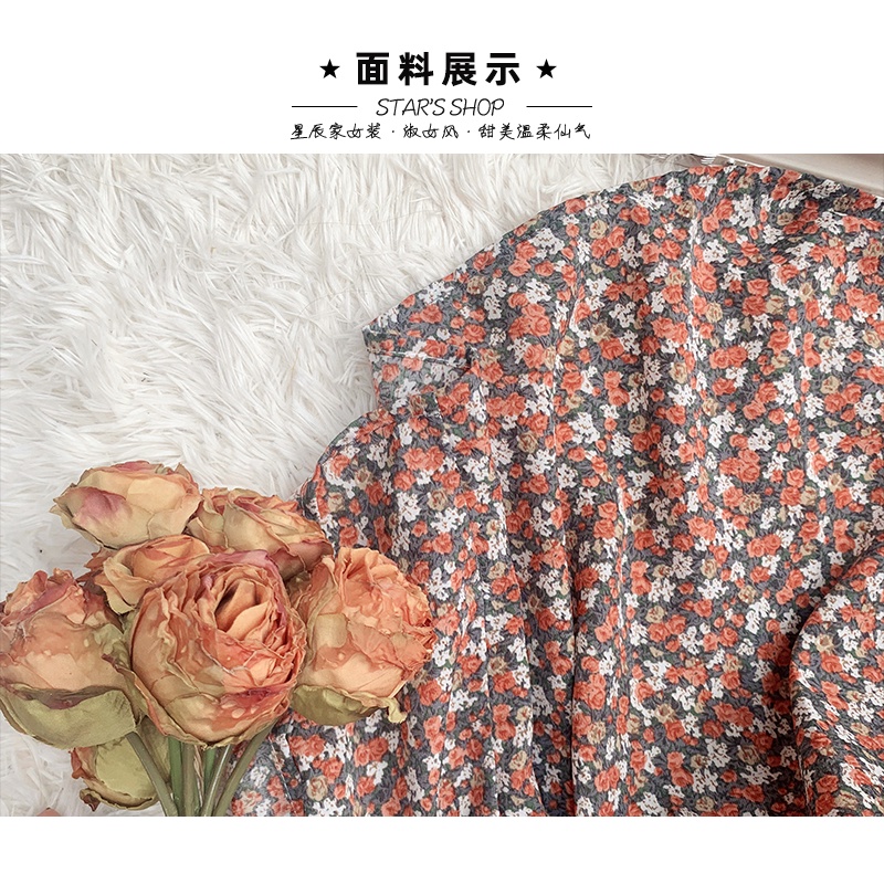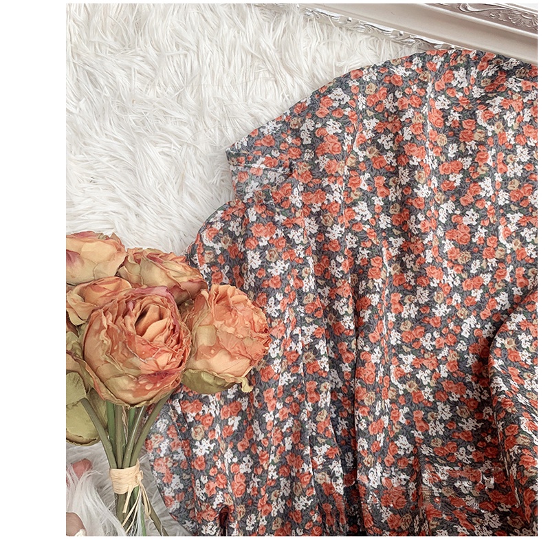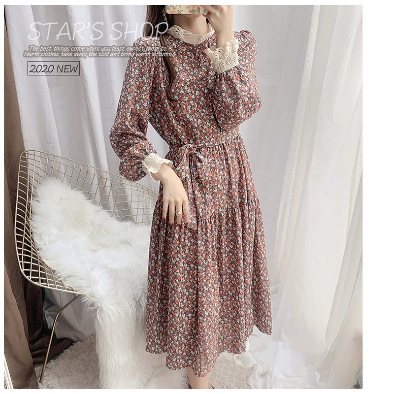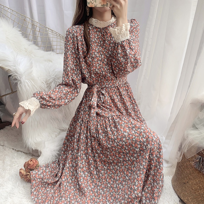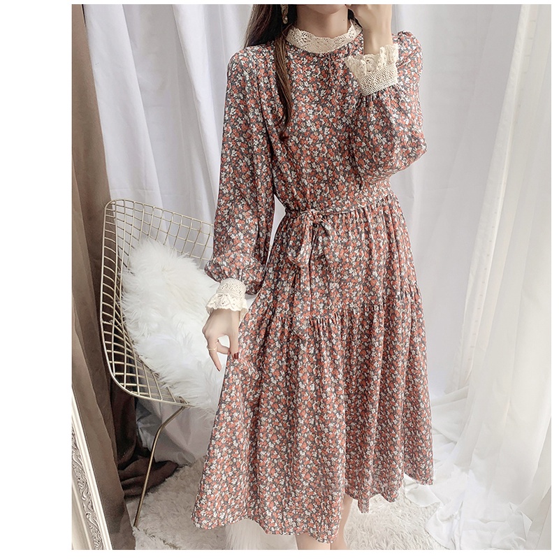 AIMEI korean dress wanita floral bunga lengan panjang berpotongan renda musim gugur dan musim dingin
