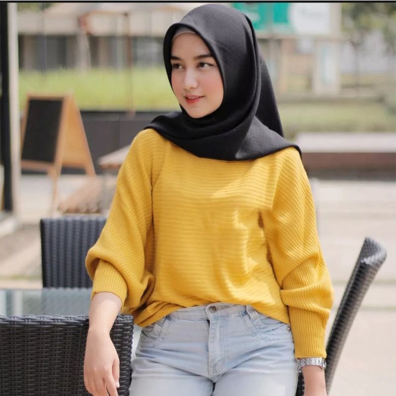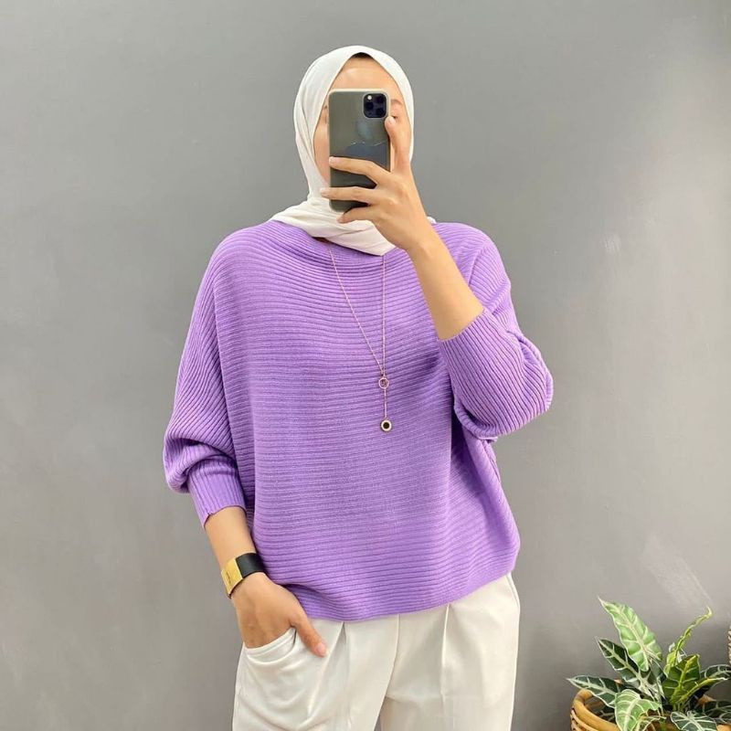 BLOUSE BAJU RAJUT BATWING | ATASAN BLOUSE WANITA | BAJU WANITA RAJUT TEBAL | SWEATER MODEL KELELAWAR