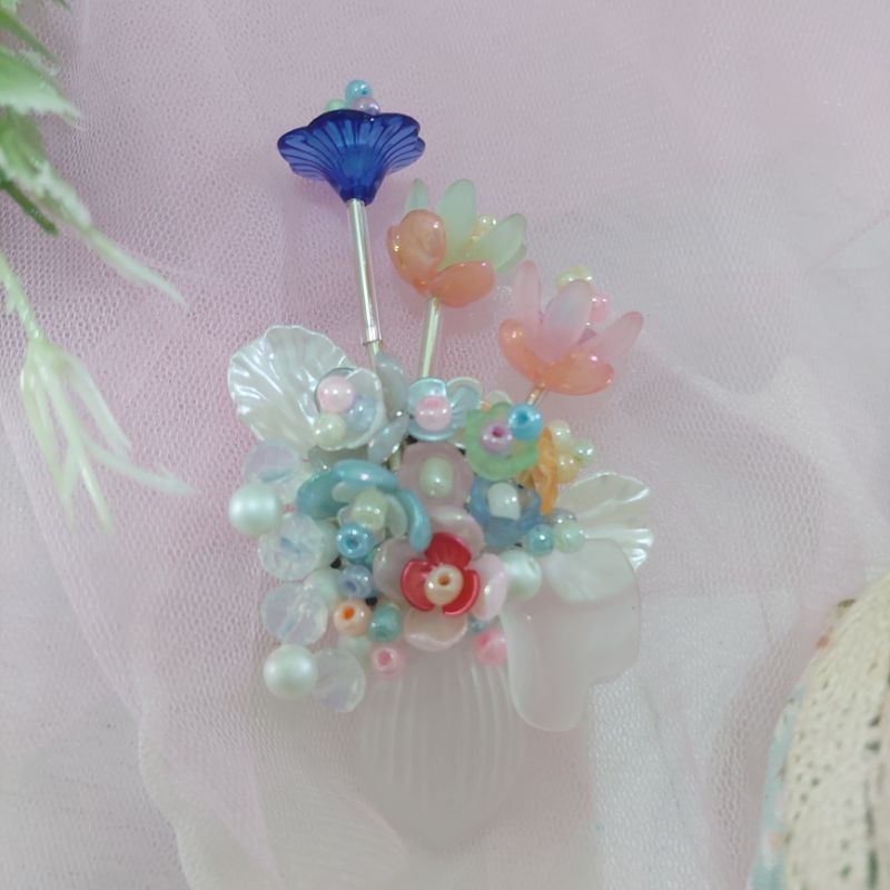 Bros sarangan bunga unik | bros vas bunga | bros buket bunga