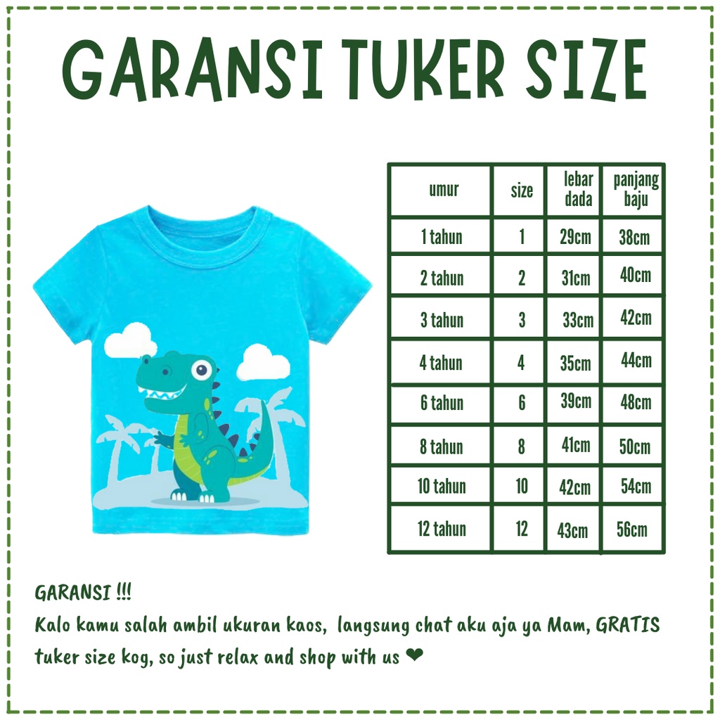 KIDDOSAURUS - Dikirim Sesuai Foto Kaos Anak Laki-Laki Kaos Karakter Lucu Warna Cerah Usia 1-12 Tahun