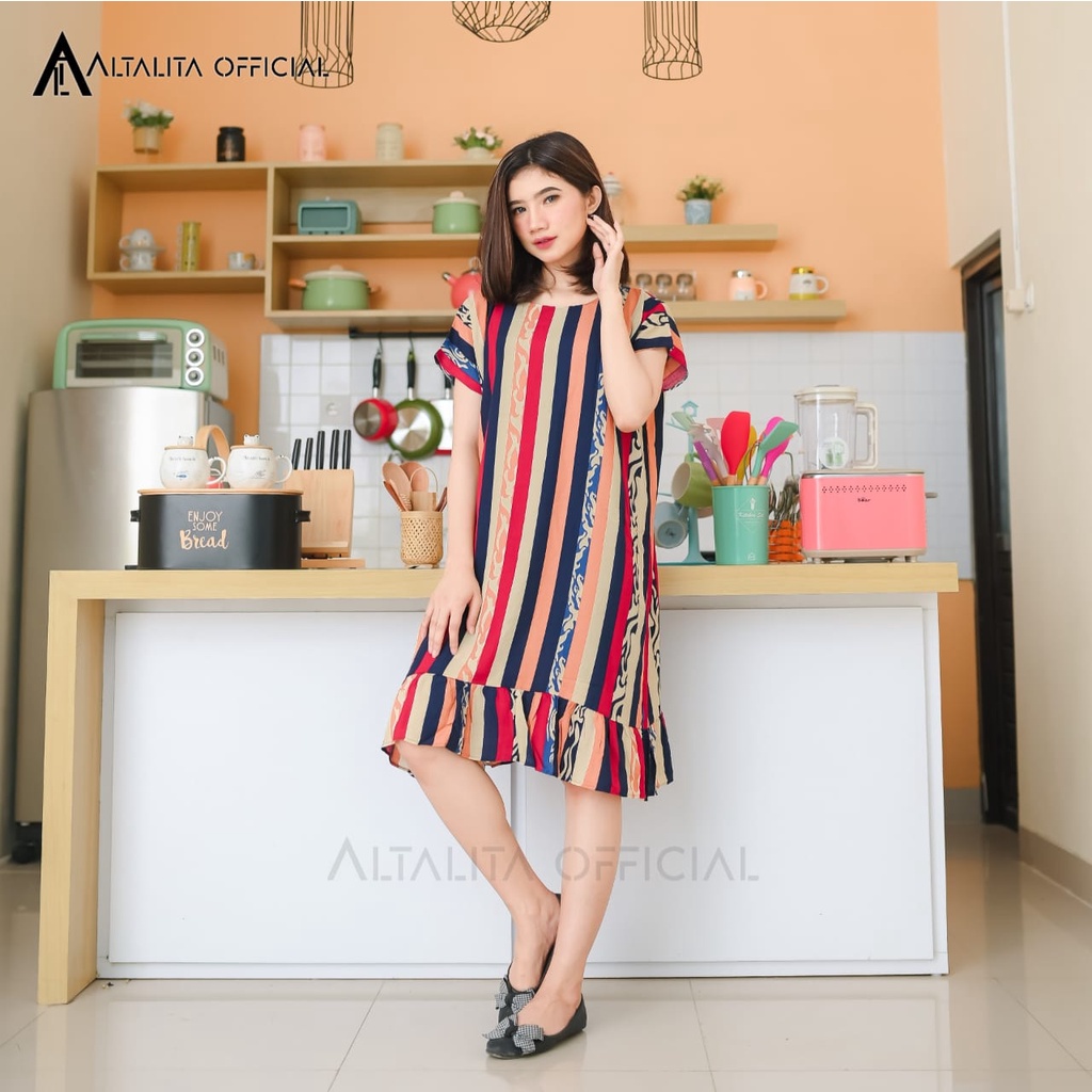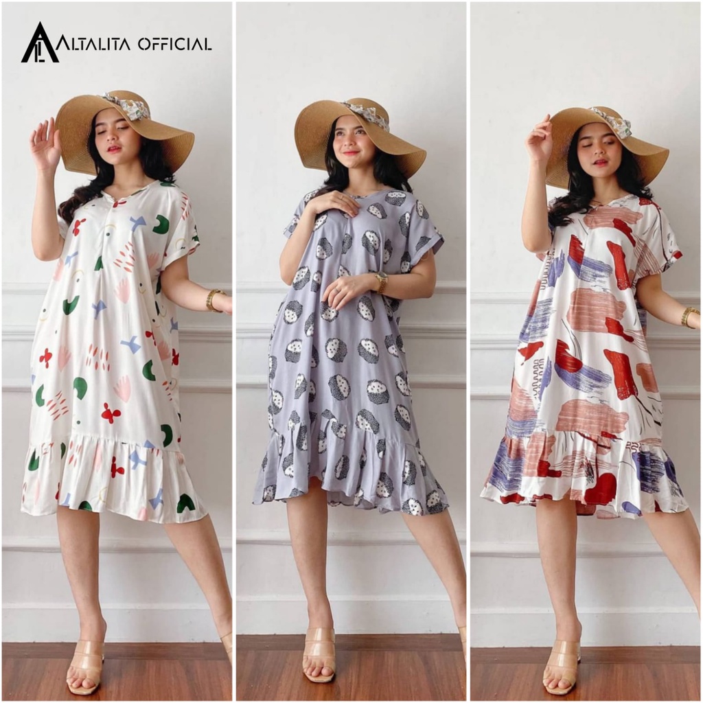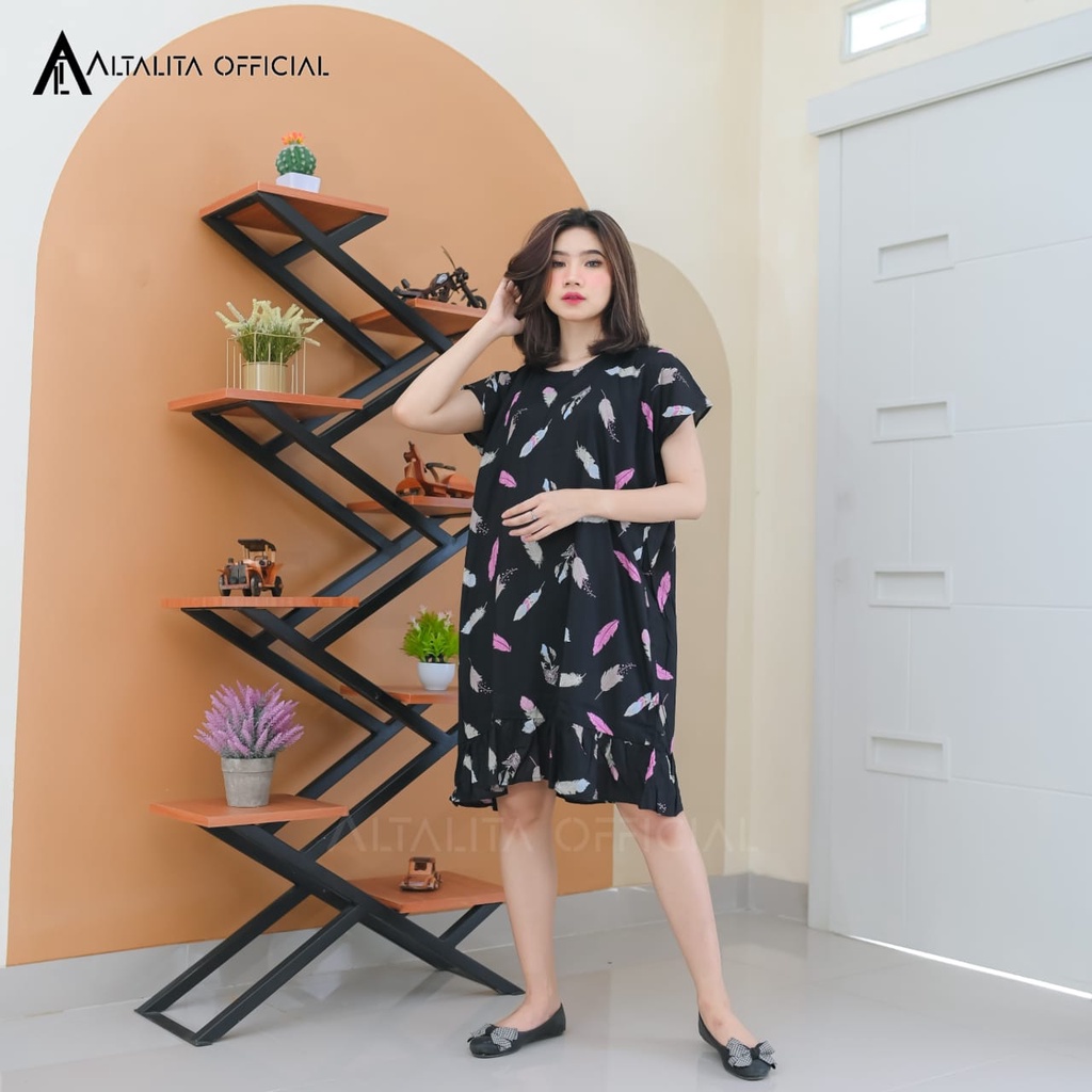 Daster Viral Ruffle Kekinian Rayon Premium Lengan Pendek Murah Jumbo LD 120 Non Busui