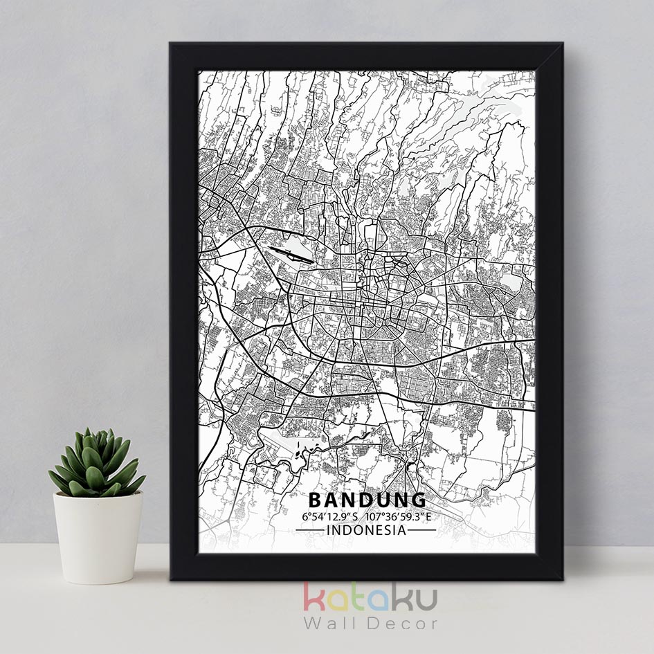 Bandung City Map Art Hiasan Dinding Poster Peta Bandung Wall Decor Ukuran A3