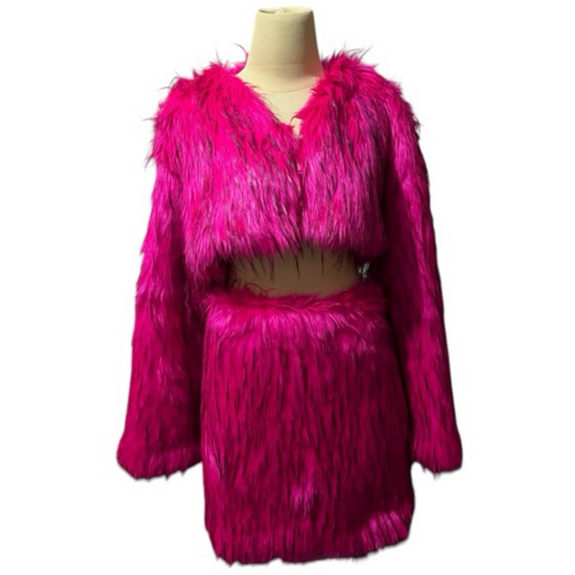 ONE SET CROP FUR JACKET & FUR SKIRT - Set fur outfit by hoccoshop rok bulu crop jaket bulu outfit bulu satu set
