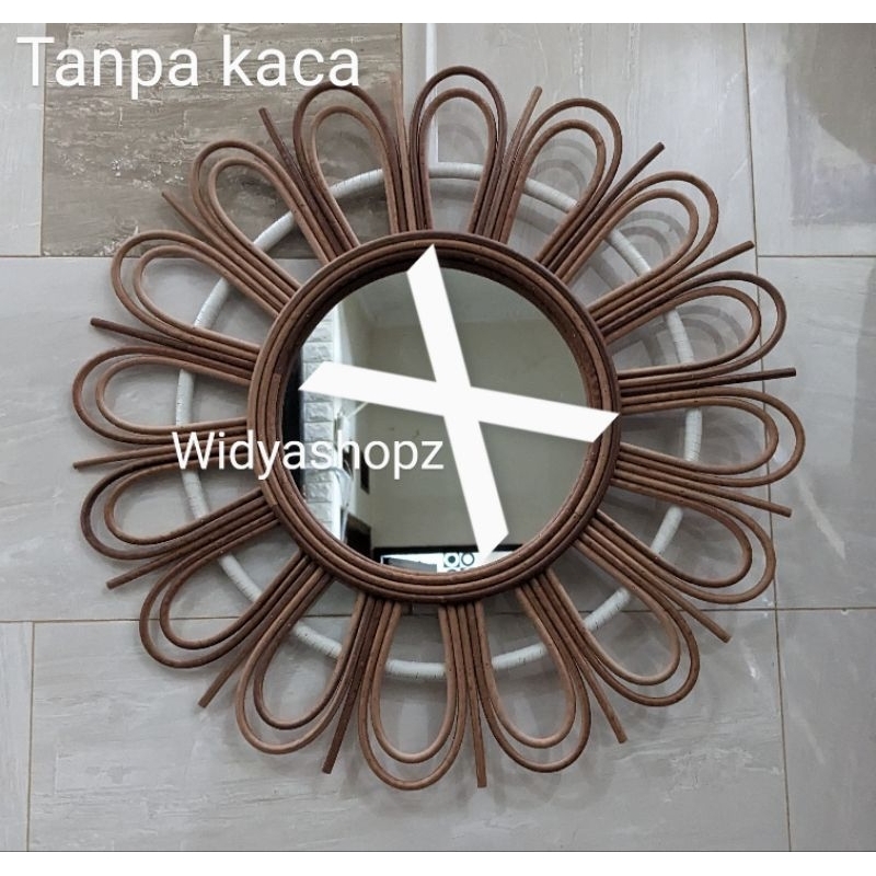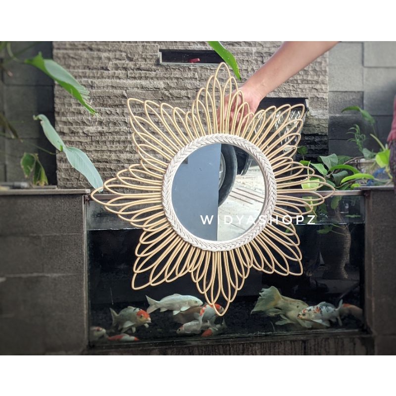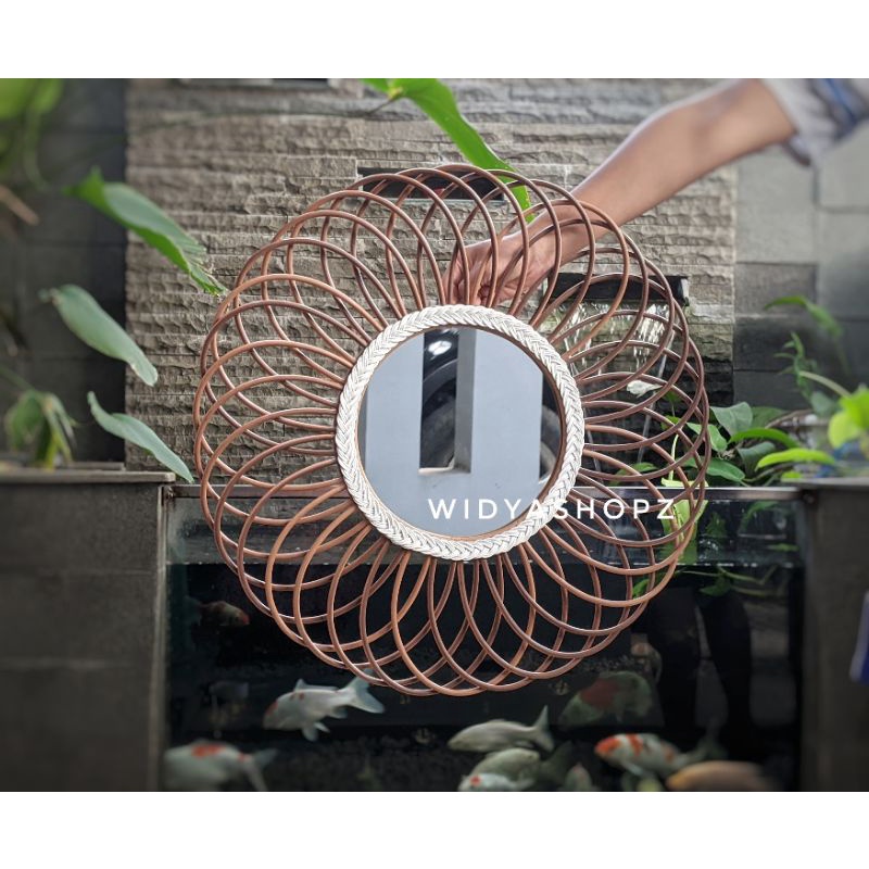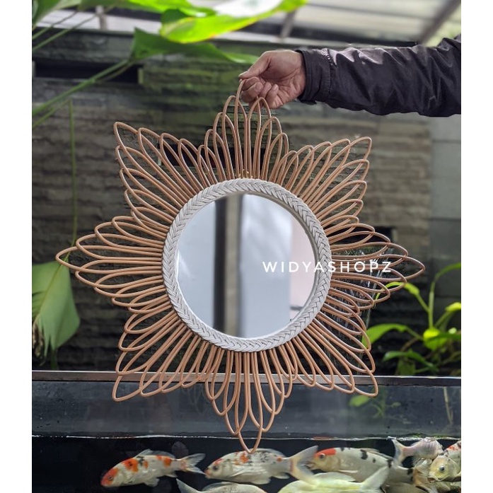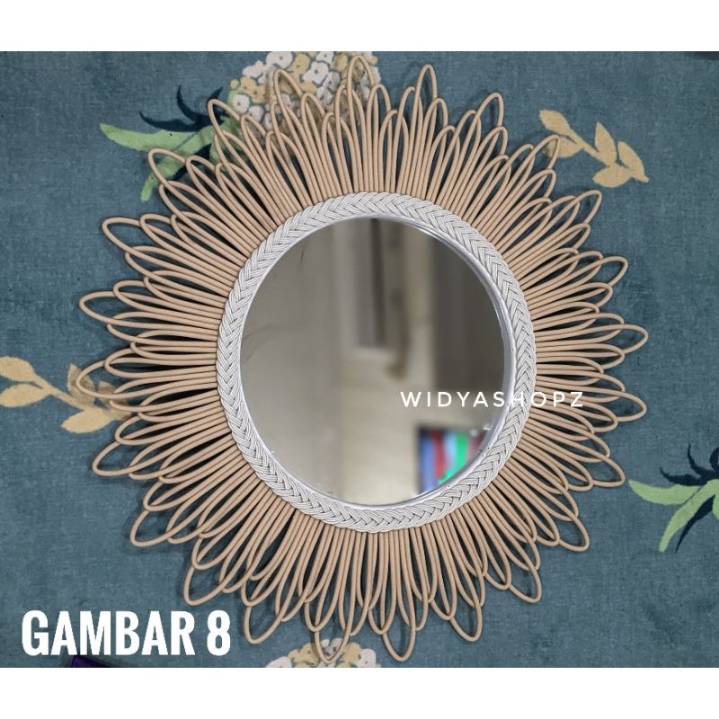 kaca cermin rotan sintetis hiasan dinding ruang tamu estetik kerajinan tangan furniture unik lucu