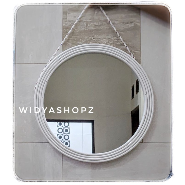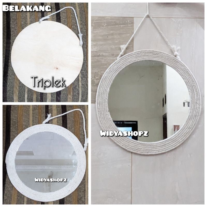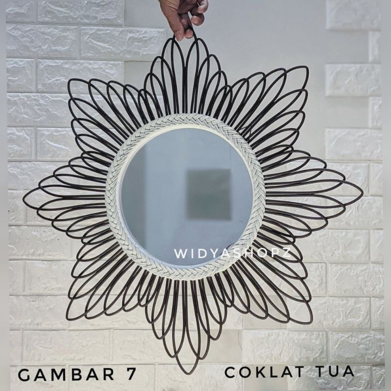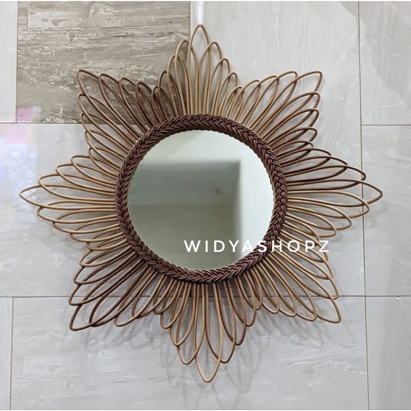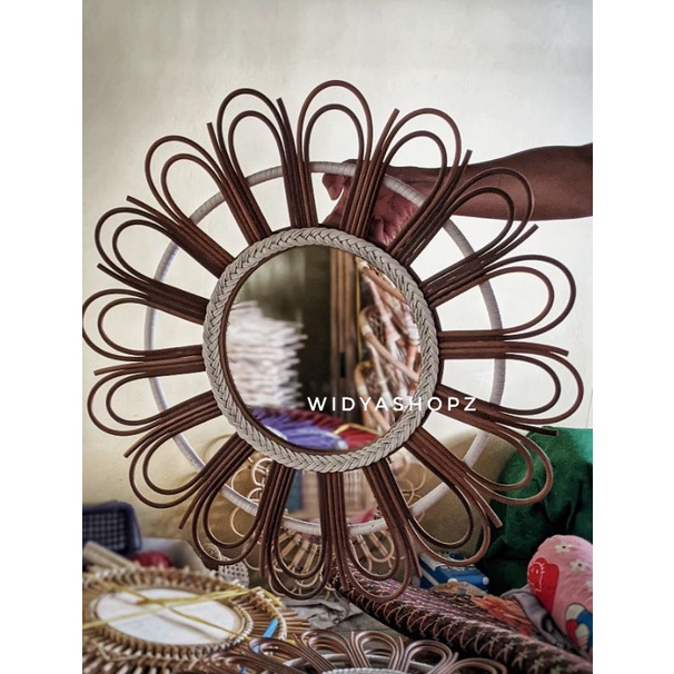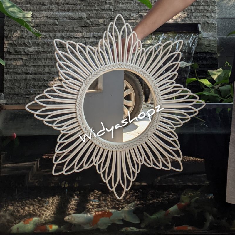 kaca cermin rotan sintetis hiasan dinding ruang tamu estetik kerajinan tangan furniture unik lucu