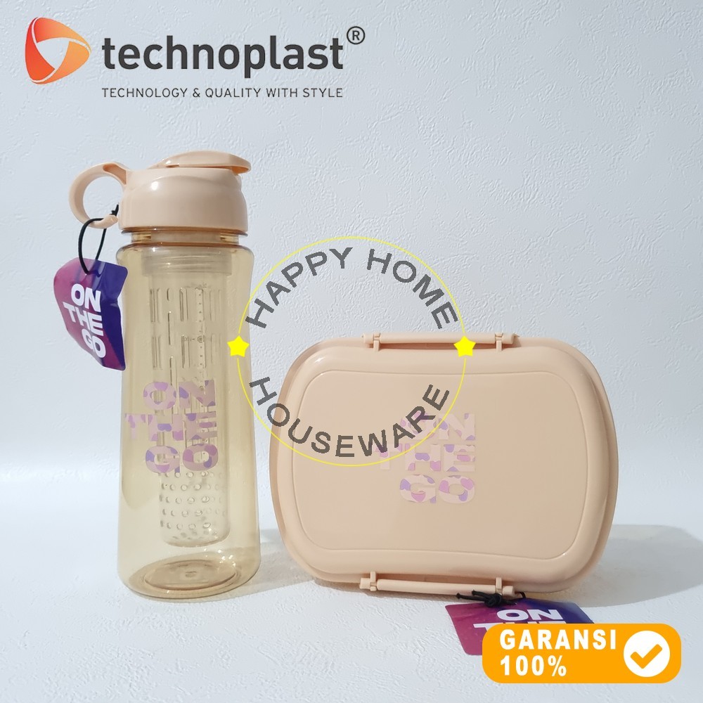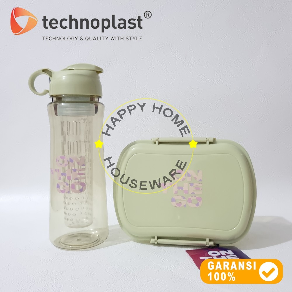 TECHNOPLAST On The Go Lunch Box Bundle Set Plastik Kotak Bekal Sekat 1000ml & Botol Air Infused 700ml