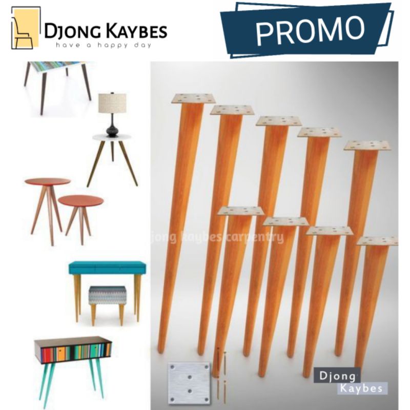 Kaki kayu meja minimalis Hairpin legs, Djong Kaybes HLWD-01 ORIGINAL, Miring.