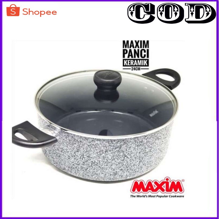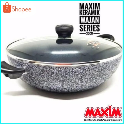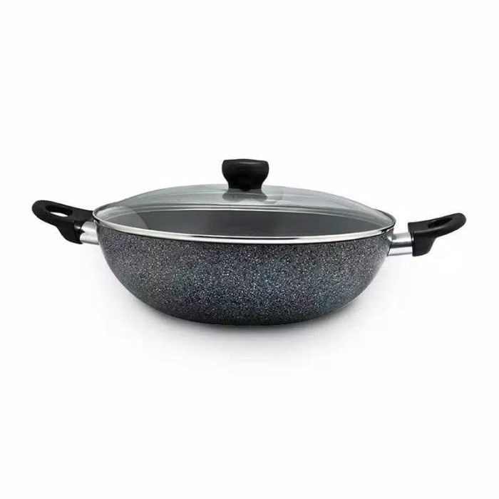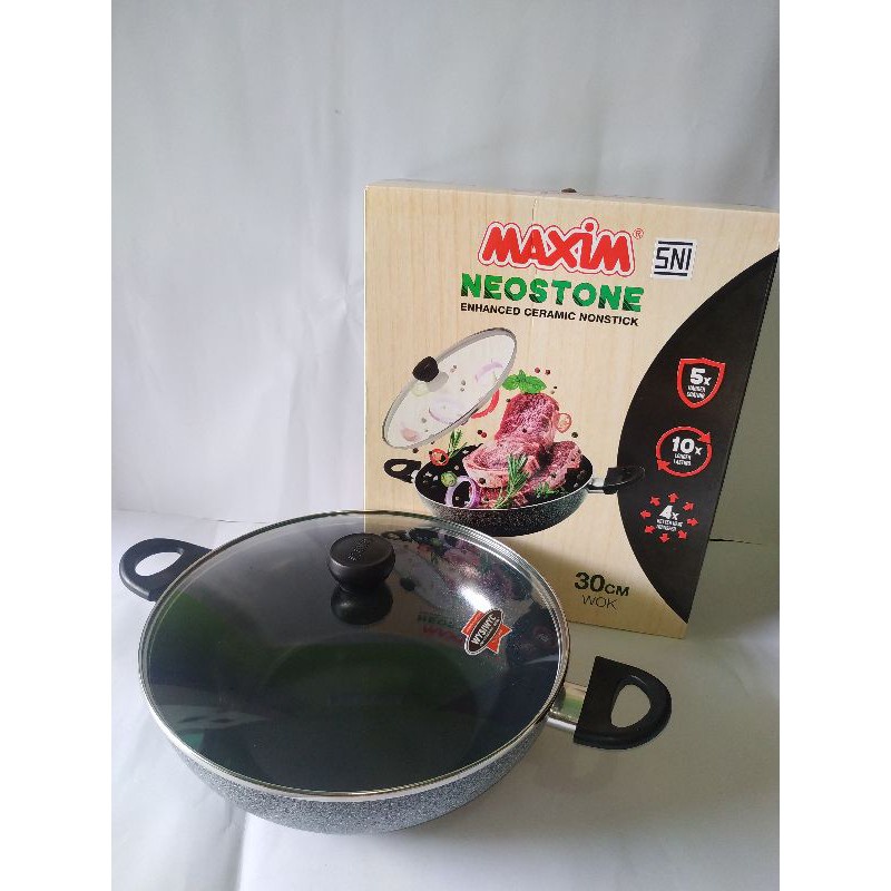 Maxim Neostone Wok Marble Ceramic Wajan Penggorengan 30 Cm+tutup kaca