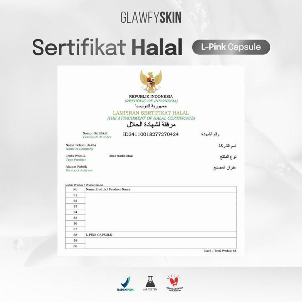 Glawfyskin [ 6 BOX ] L-Pink Capsule | Suplemen Kulit | Booster Capsule | Booster Capsule | Capsule Kesehatan Kulit BPOM