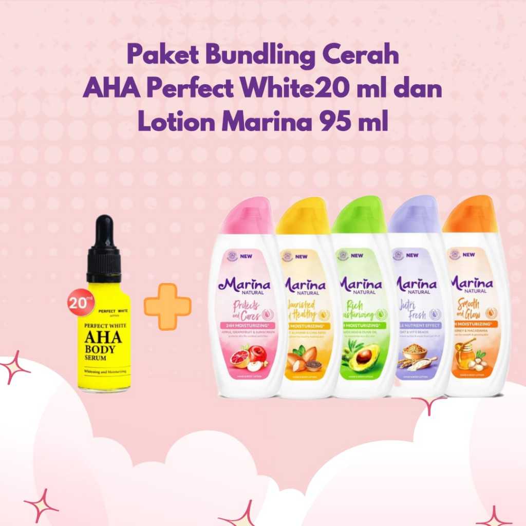 Paket Cerah Perfect White AHA 20ml dan Marina Lotion 95ml