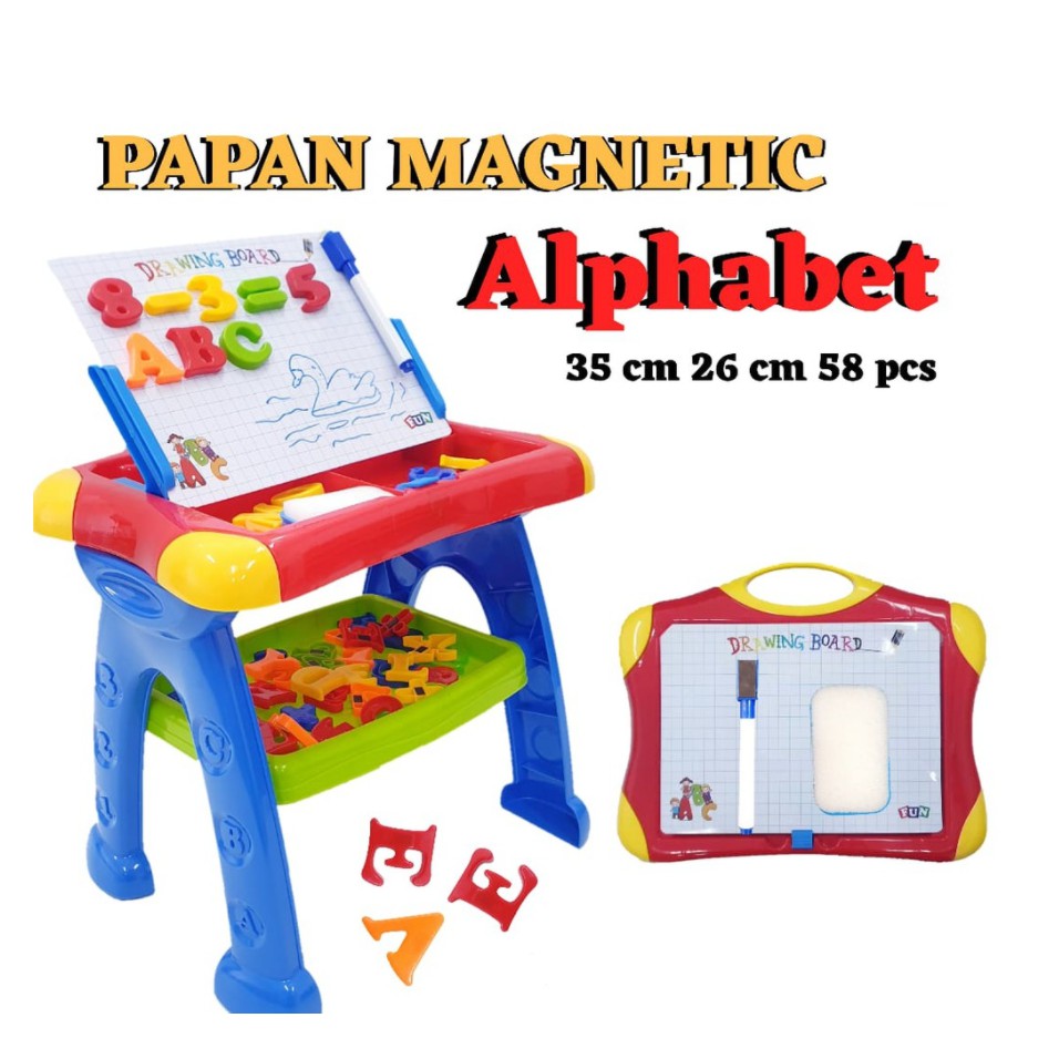Mainan Edukasi Anak Magnetic Learning Table Lengkap / Easel 3in1 Alphabet Angka dan Alat Gambar BS L