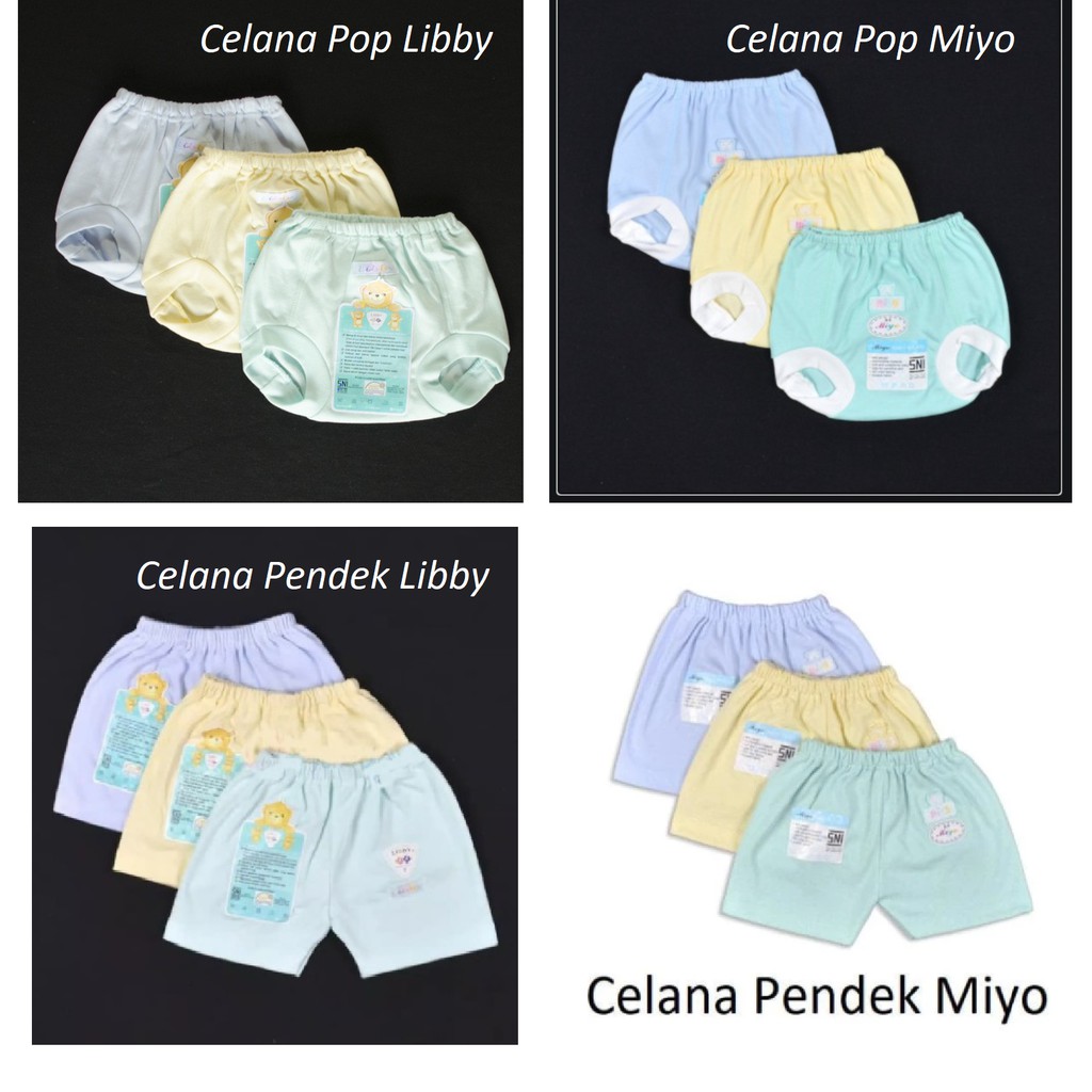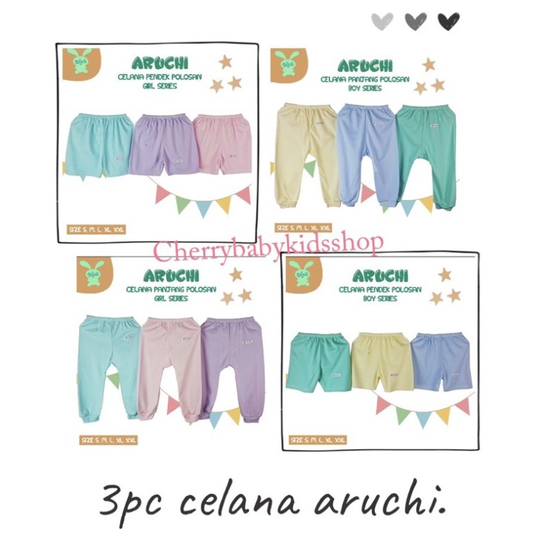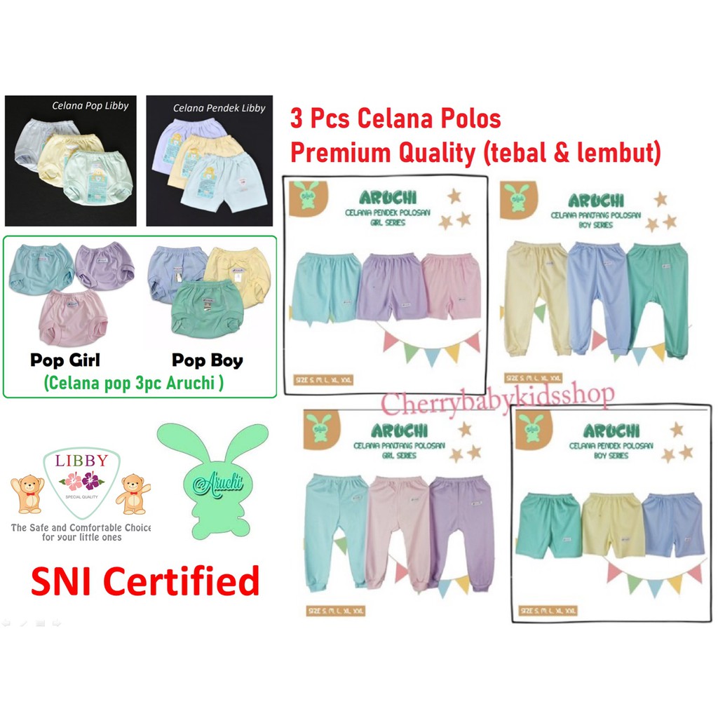 3 Pcs ARUCHI Celana Pop Pendek Panjang POLOS Bayi / Anak Warna Premium CBKS Jobel Sale