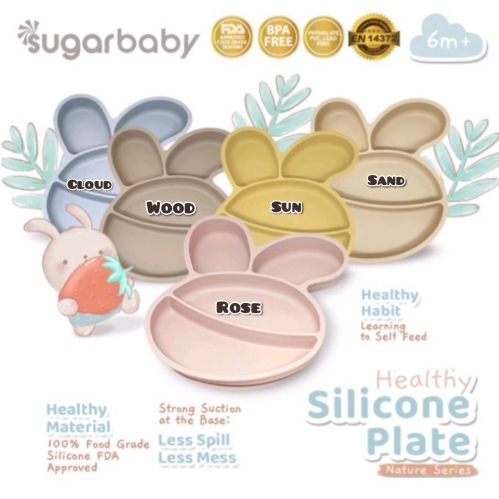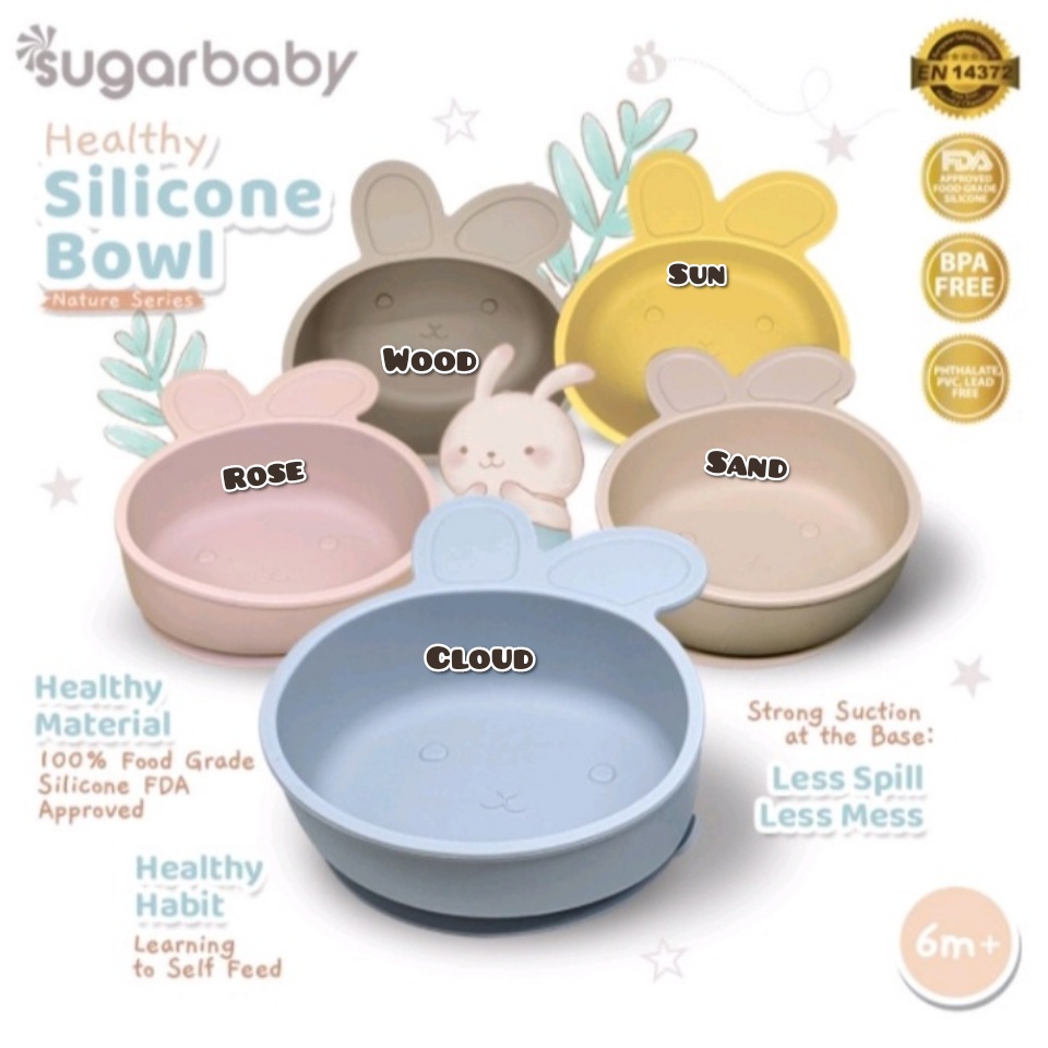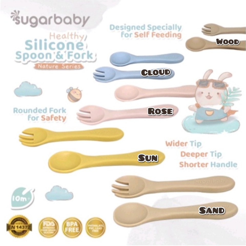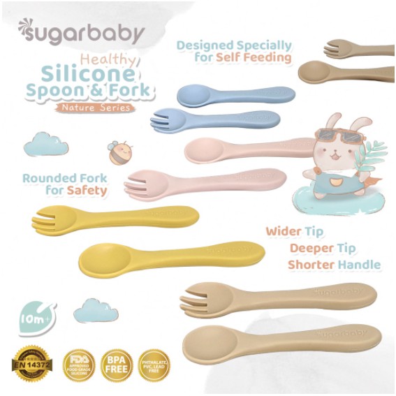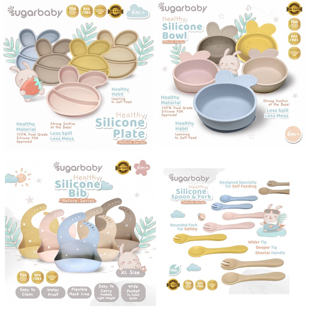 Sugar baby Perlengkapan MPASI Bayi Healthy Silicone Bowl Spoon & Fork Silicone Bib Silicone Plate (Nature Series) CBKS