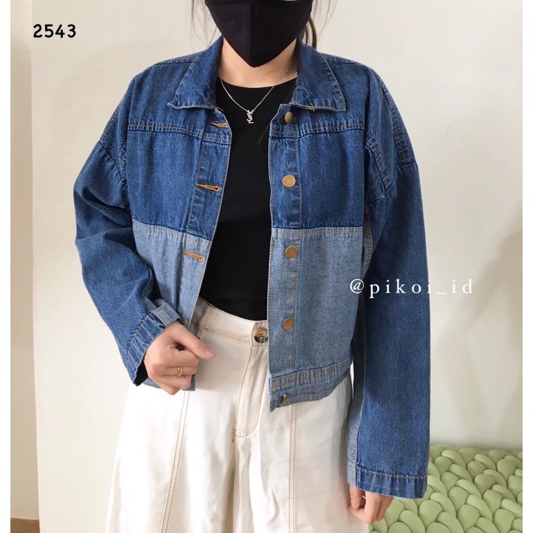 Jaket crop jeans / outer crop denim / jaket jeans korea / korean style / outer cewek kekinian / 2543