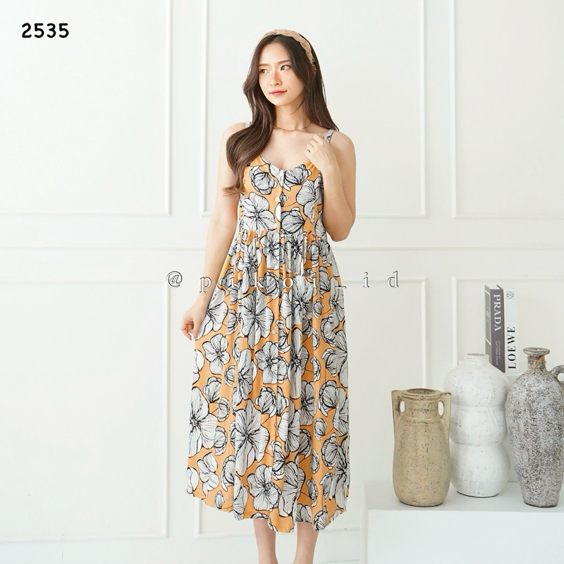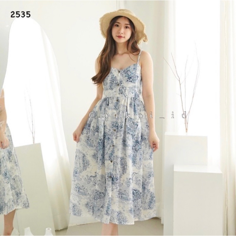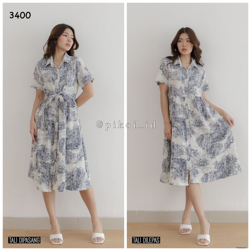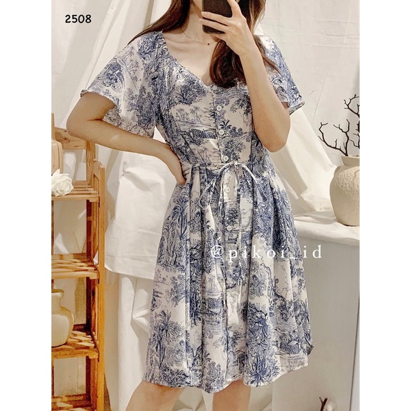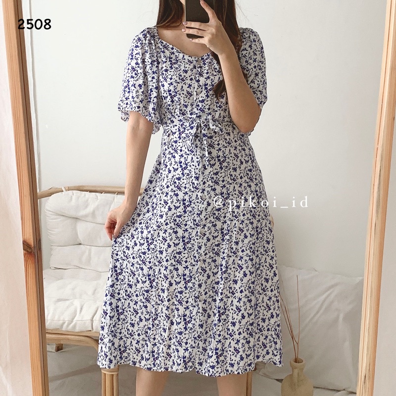 Diora dress / dress korean style / dress putih adem santai / dress pantai kancing casual summer 2508
