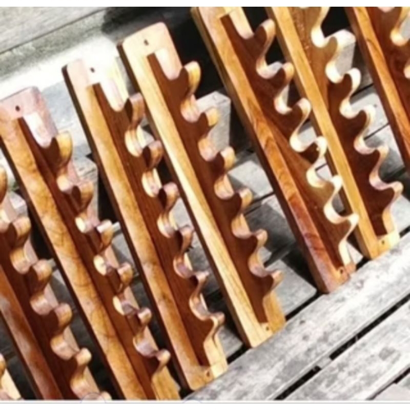 Rak pancing/joran/tegek isi 6 plong bahan jati asli solid natural/mentahan