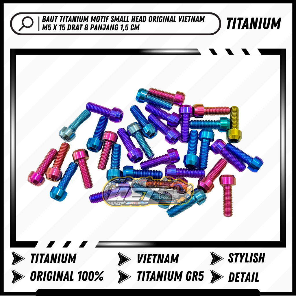 Baut Titanium M 5 x 15 Small Drat 8 Panjang 1,5 Cm GR5 | Silver Brown Light Blue Gold Pink Maroon Purple Blue Purple Blue Blue Tosca Green Tosca Green Green Neon