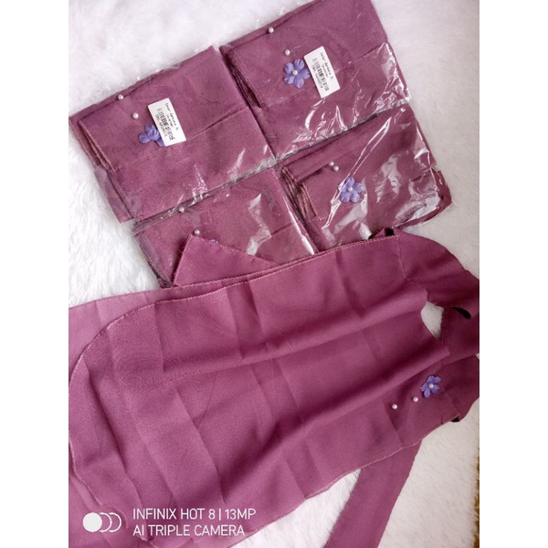 Cadar Niqab Bandana Bahan Sifon 2 Layers Motif Payet Bunga Warna Lavender.