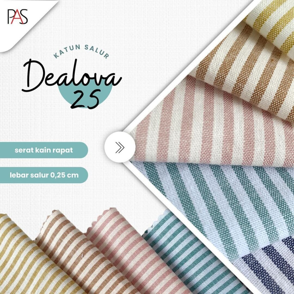 [MINIMAL 2X KLIK UNTUK 1 YARD] Kain Katun Ecer Bahan Dealova 25 - Salur 0.25 cm Premium HARGA 1/2 YARD