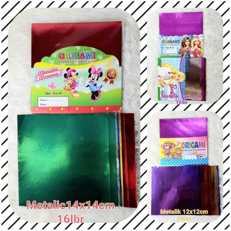 (2pak)Kertas Lipat/Origami Kilap/Emas/Metalik 12x12/14x14/16×16 1Muka/1Sisi