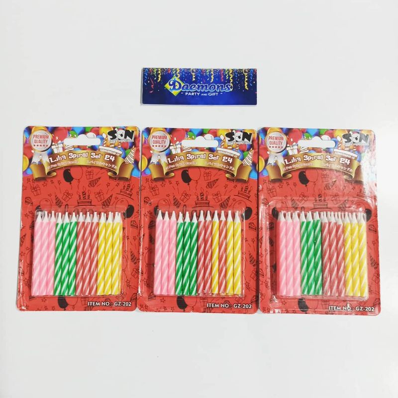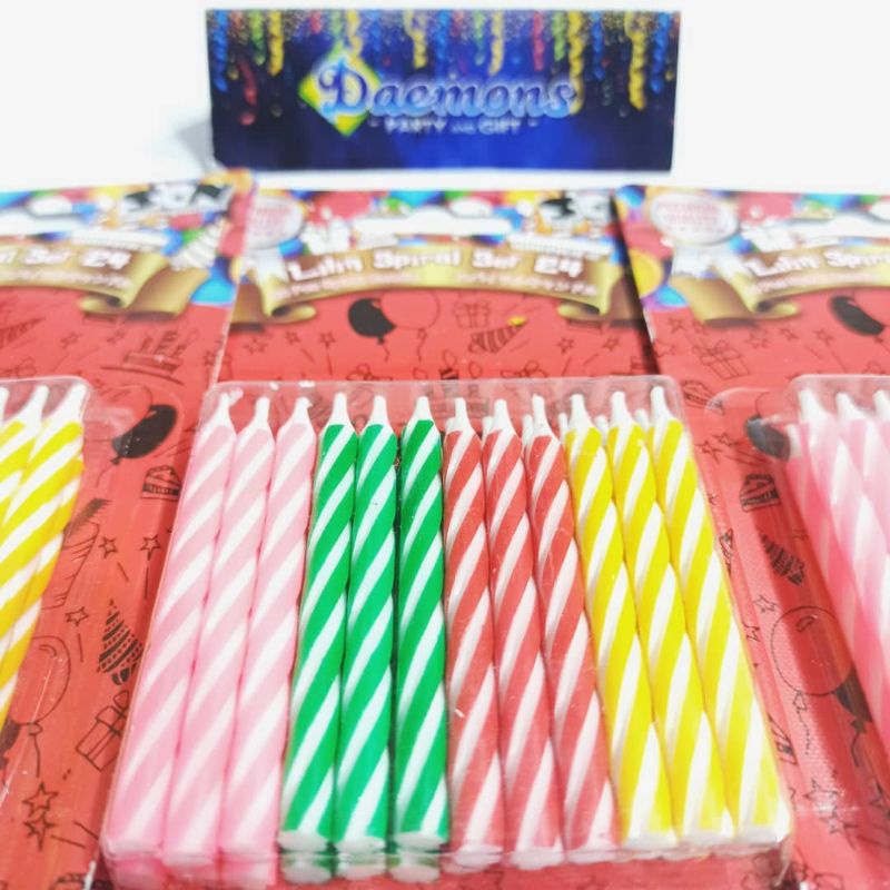 LILIN SPIRAL SET 24 / LILIN WARNA-WARNI, LILIN RAINBOW, LILIN DEKORASI, LILIN ULTAH, LILIN PERAYAAN, LILIN PESTA, LILIN CUP CAKE, LILIN KUE TART, LILIN TERMURAH, LILIN TERLARIS