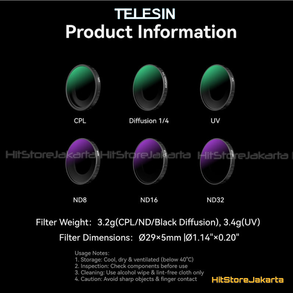 TELESIN Filter Kit For DJI Osmo Nano CPL UV ND Black Diffusion Filter Free Anti Gores Tempered Glass