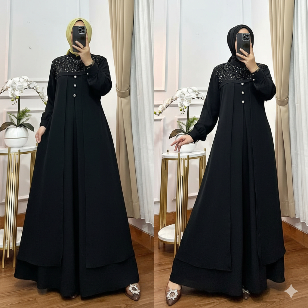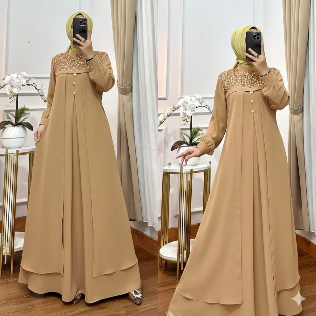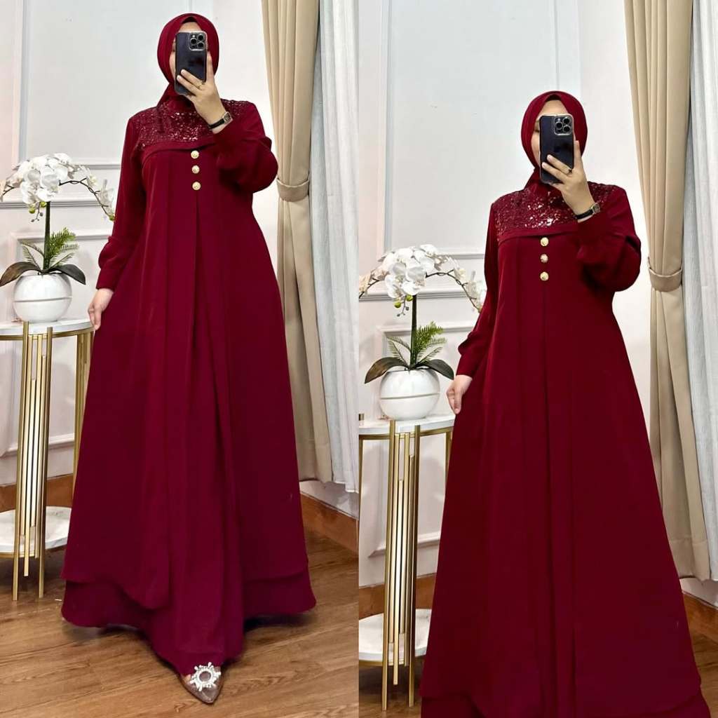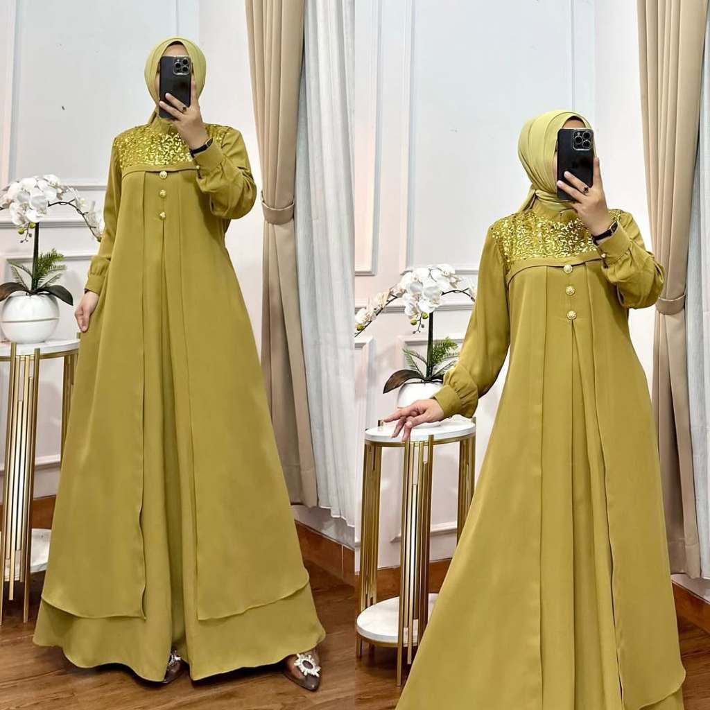 Khadijah Dress Gamis Lebaran Model Terbaru 2026 Mix Payet Tile Sequin Pesta Kondangan Simple Elegan