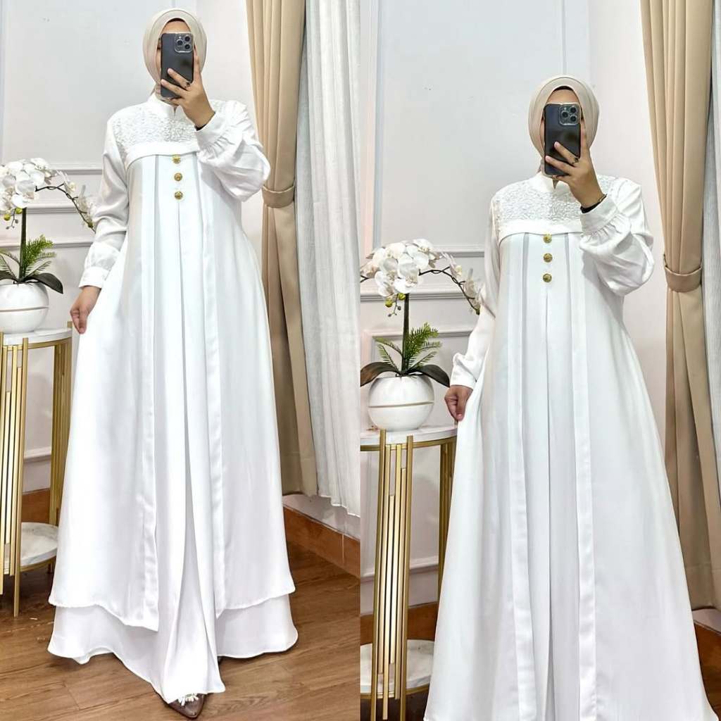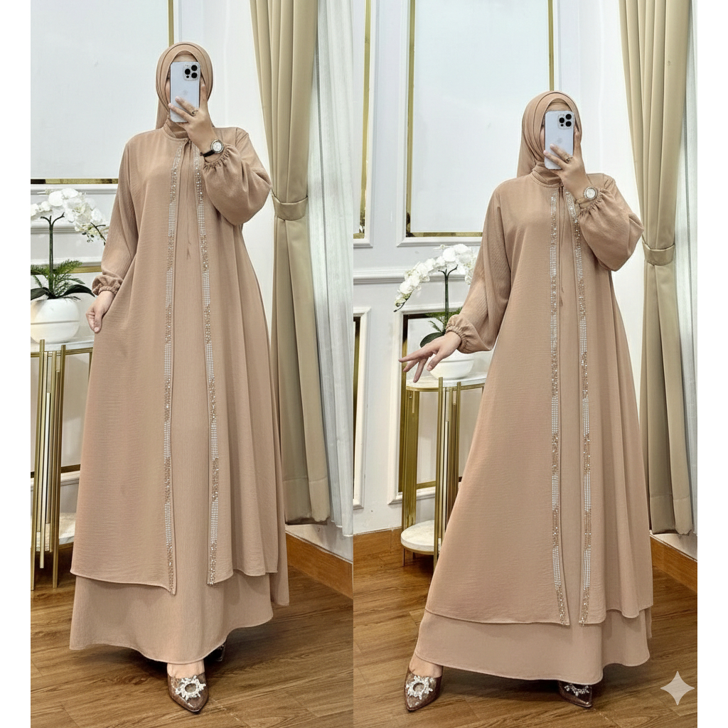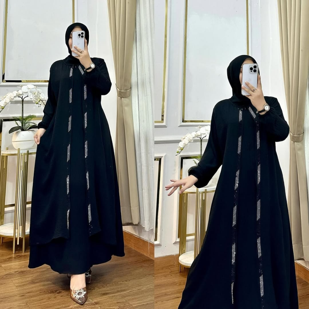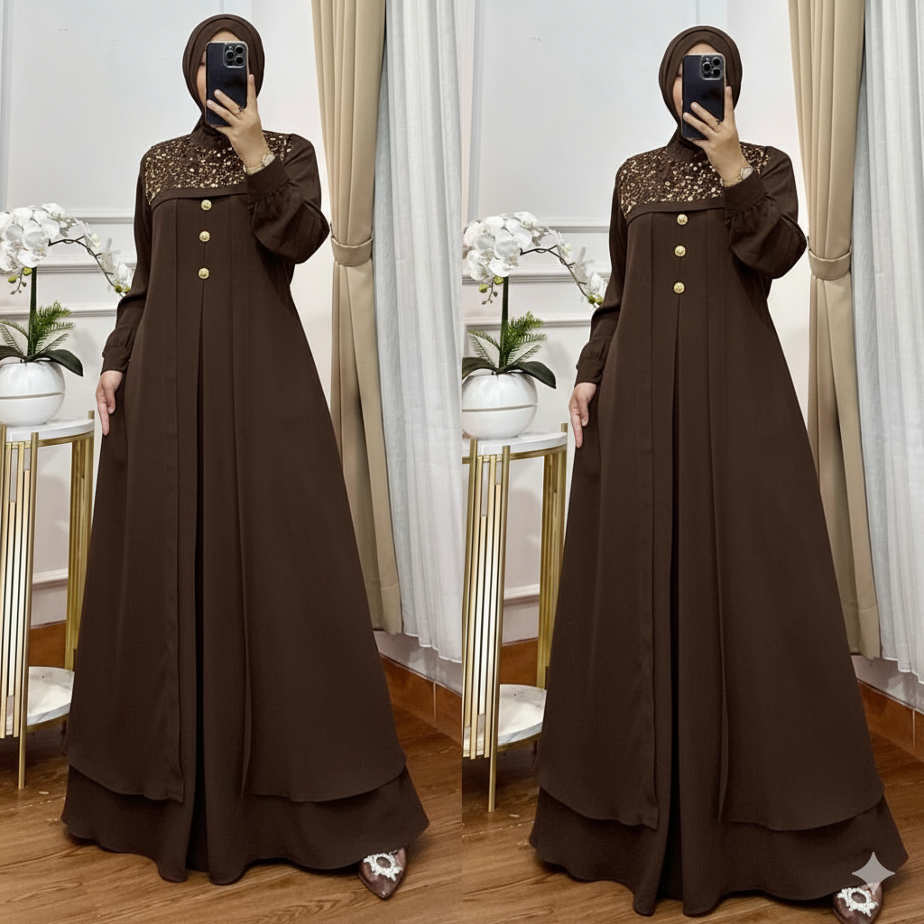 Khadijah Dress Gamis Lebaran Model Terbaru 2026 Mix Payet Tile Sequin Pesta Kondangan Simple Elegan