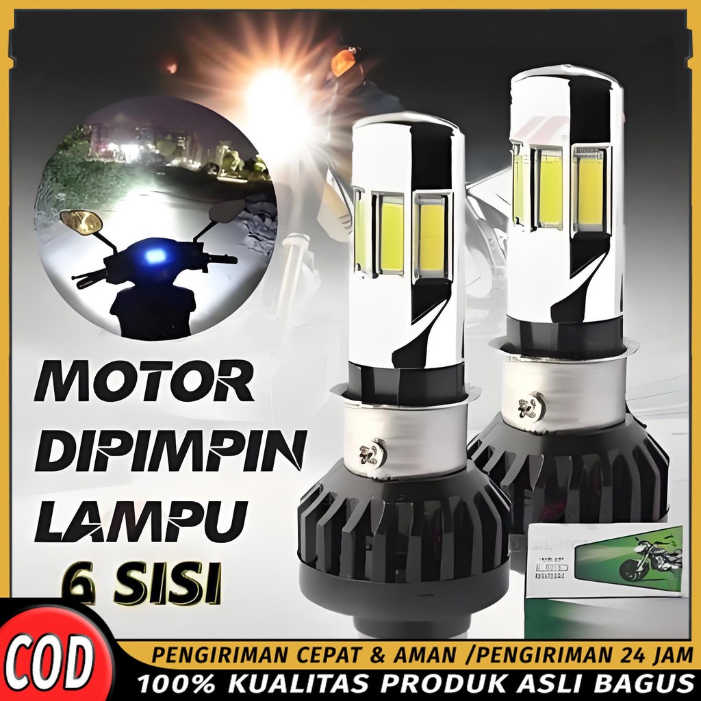 Lampu LED Depan Motor Mobil 6 Sisi Super Terang Putih Tahan Air Hemat Energi Warna Putih Jernih