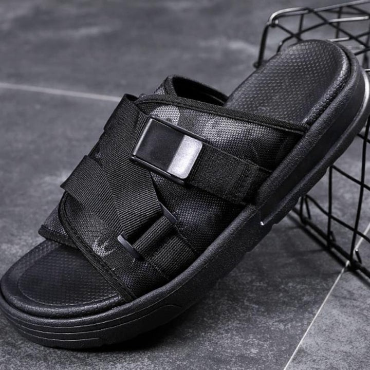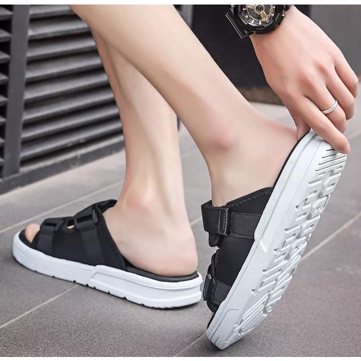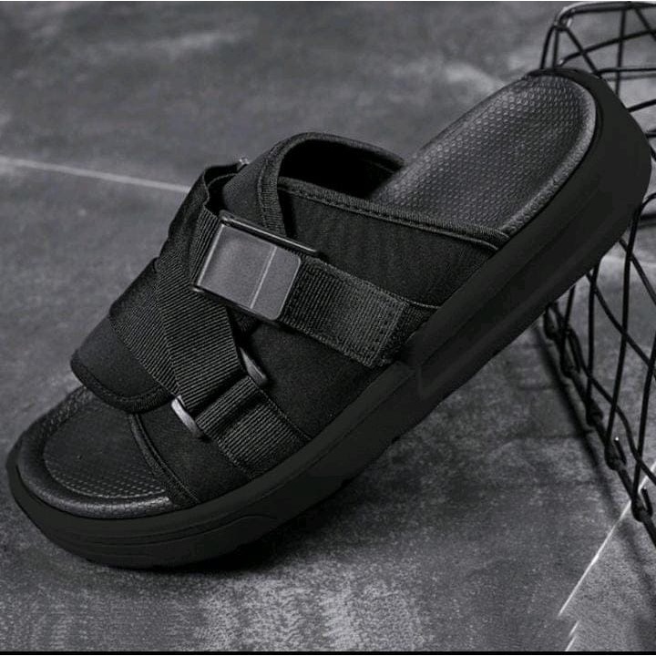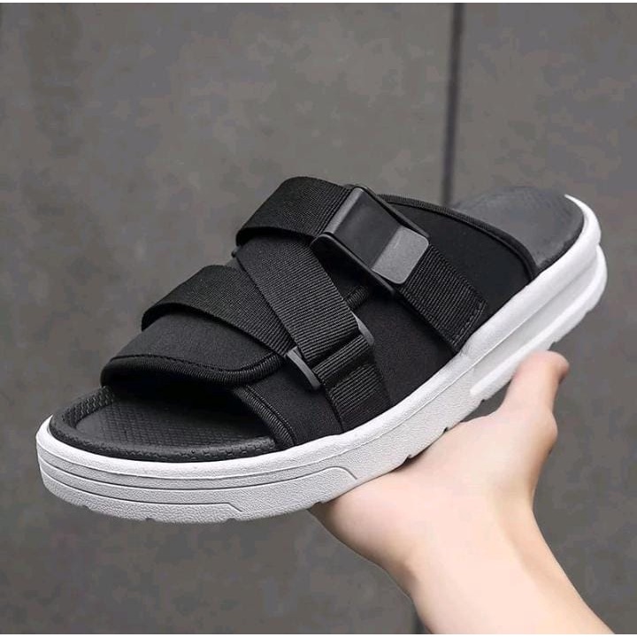 GROSIR!! Sendal Slide Hitam Slip On Casual Pria Sandal Slop Sandal Kokop Murah Pria Wanita Kekinian (Unisex)