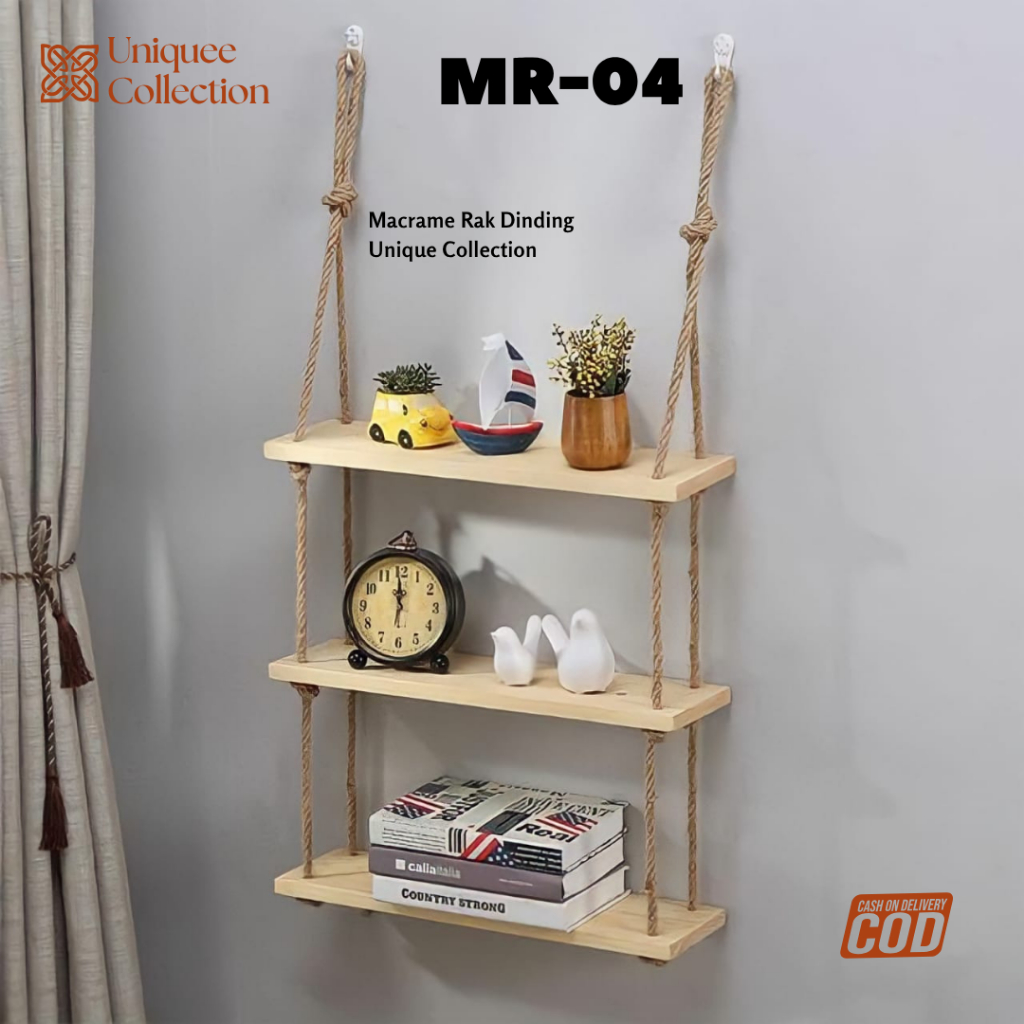 MR-04/macrame shelf hanging/makrame rak x3/rak dinding gantung/mekrem/hiasan tali dinding