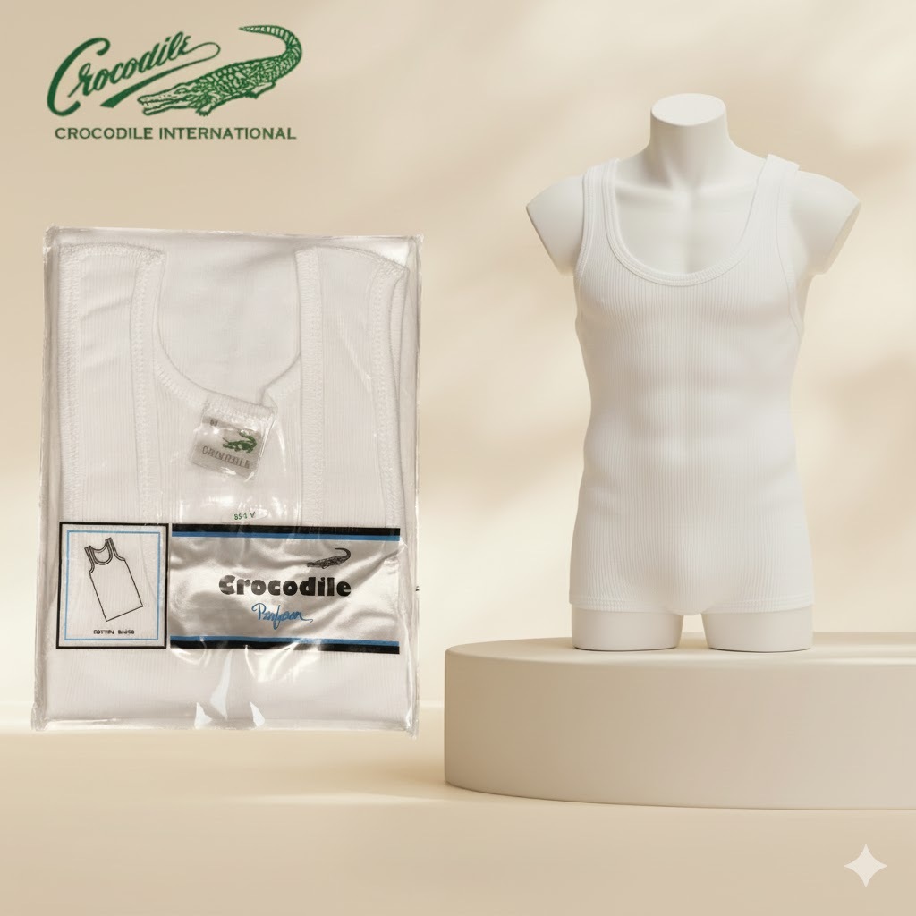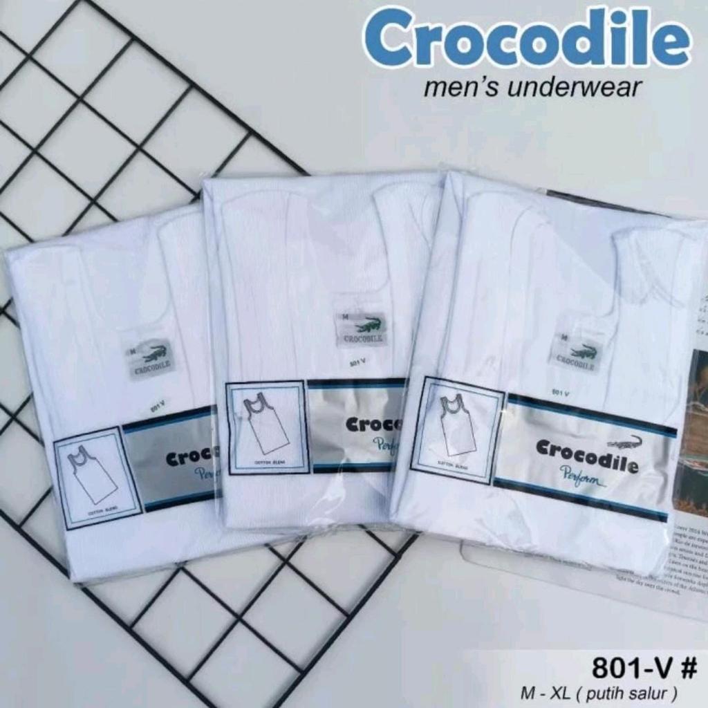Singlet Pria Crocodile 801V Katun - Kaos Dalam Pria Dewasa Putih Isi 6 Pcs Original - Singlet Crocodile 801V Kaos Dalam Pria Putih Bahan Katun Premium