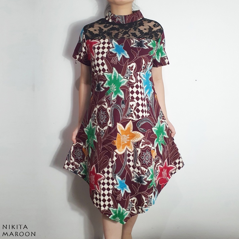 Nikita Dress Batik Brukat Katun Stretch Gaun Batik Terusan Batik