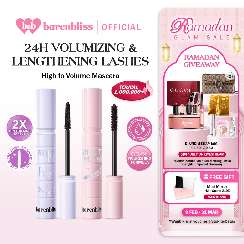[MUST HAVE] BNB barenbliss Roll To Volume & Roll To High Mascara 8g Maskara Tahan 24 Jam Volumizing Lengthening Waterproof Smudgeproof Sweatproof Tanpa Gumpal Bulu Mata Panjang Tebal & Lentik Dengan 4X Peptide Vitamin E Jojoba Oil bnb official store