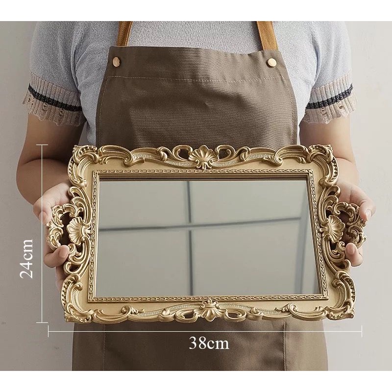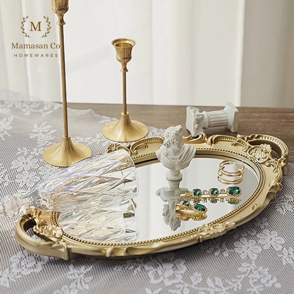Beatrice Vintage Mirror Tray Gold | Nampan Kaca