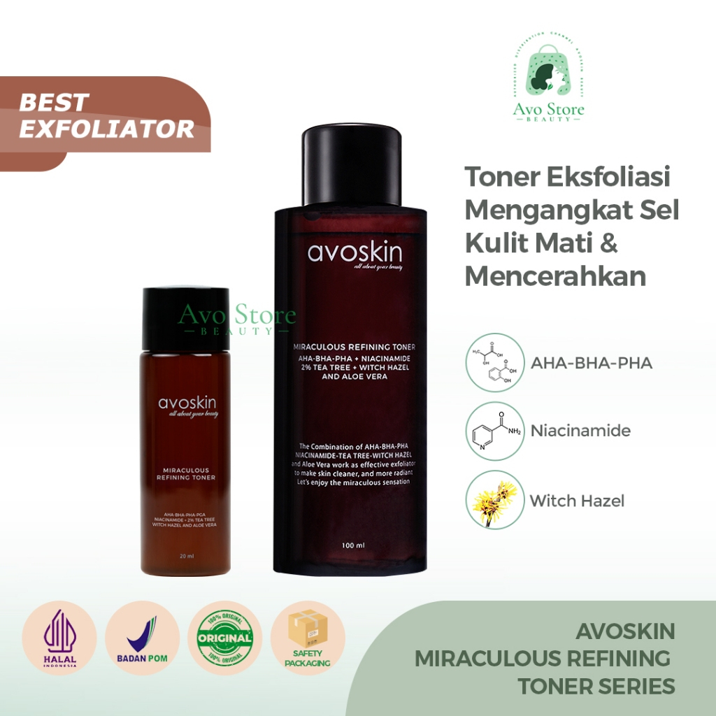 Avoskin Miraculous Refining Toner 100ml/20ml [AHA-BHA-PHA-PGA] Eksfoliasi Exfoliating
