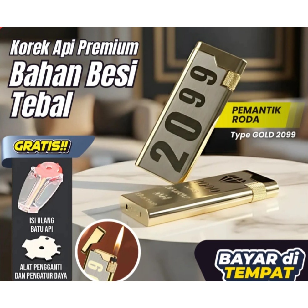 Korek Slim Tipis Gas Roda Besi Solid Type Gold 2099 new product