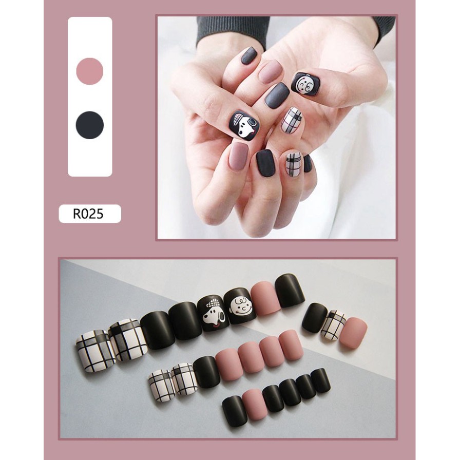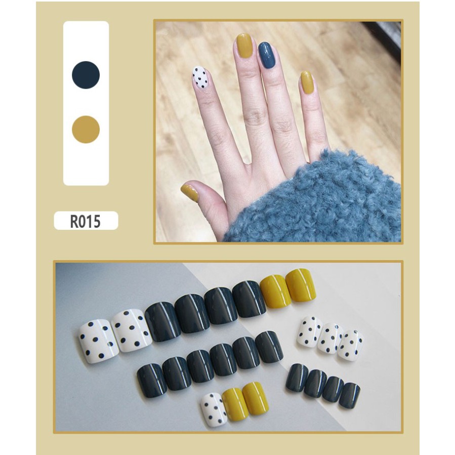 24 PCS / SET Kuku Palsu Varian Motif Gaya Korea / 24Pcs Fake Nails Free Lem Cair 2gr/Kuku Palsu Baru