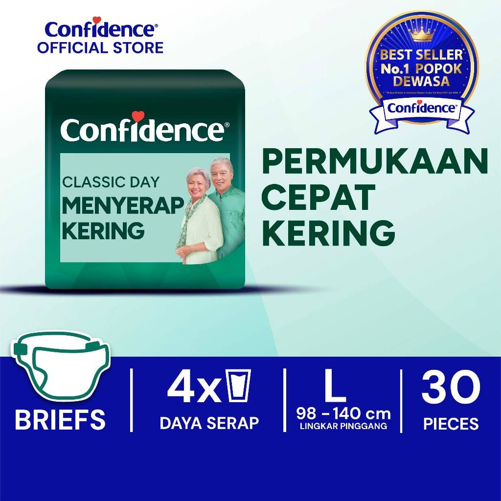 Confidence Popok Dewasa Perekat Classic Day Menyerap Kering L30