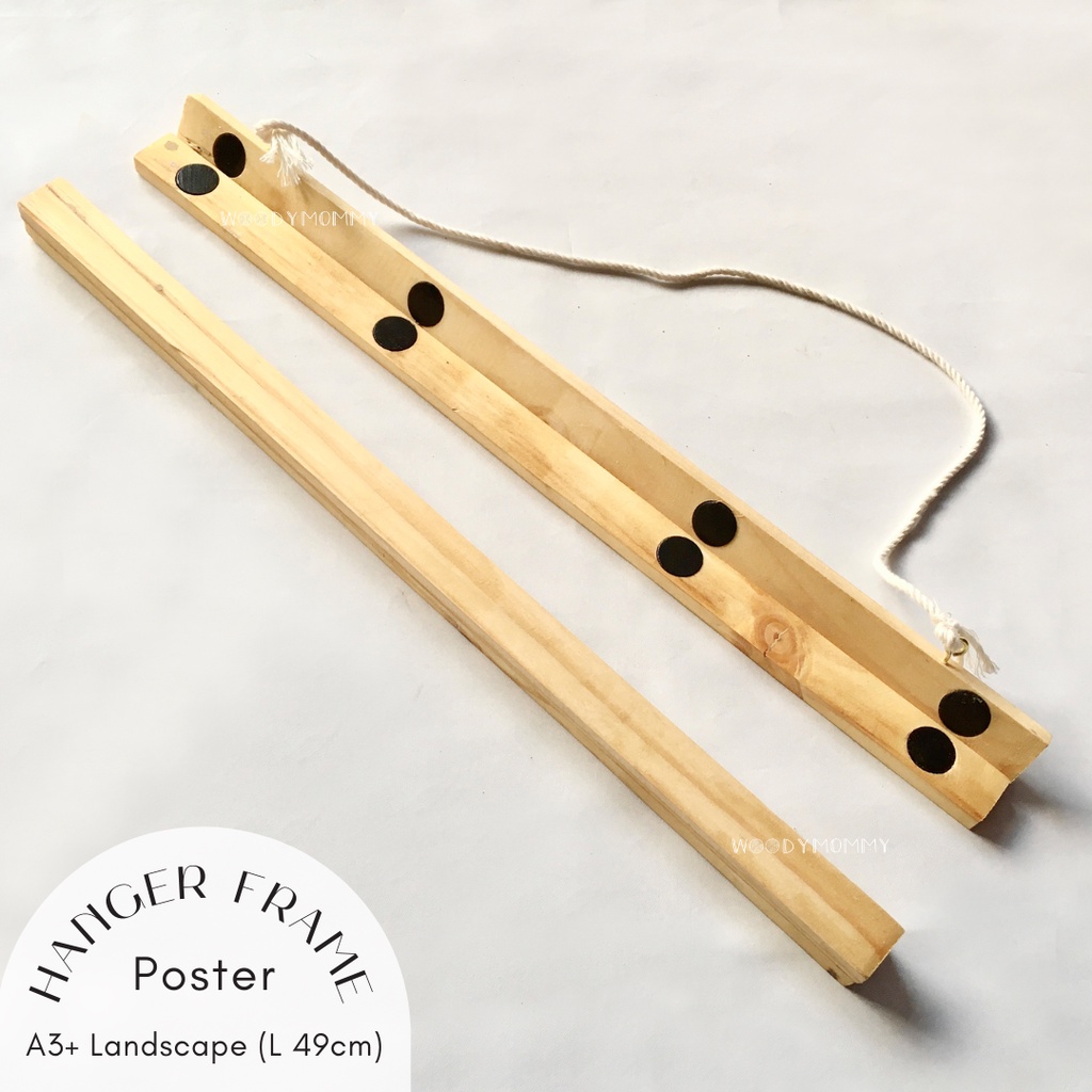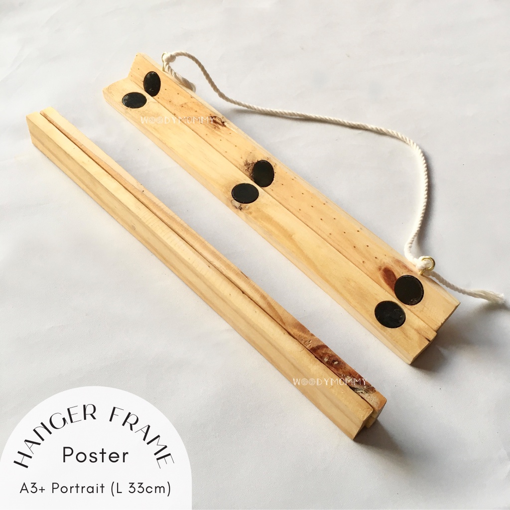 Frame Hanger Magnetik Poster A3+ 32x48 cm - Bingkai Kayu Gantung Estetik - Magnetic Poster Hanger - Aesthetic Wooden Hanging Frame