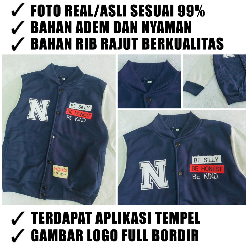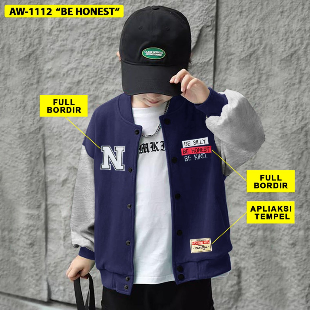Jaket Varsity unisex anak tanggung 8-15tahunan vintage bordir N-Be Honest 1112