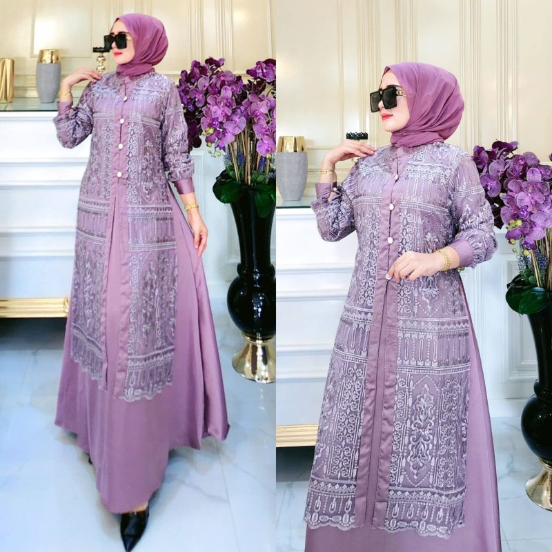 Gamis Laura Dress mewah terbaru Gamis lebaran modern kekinian