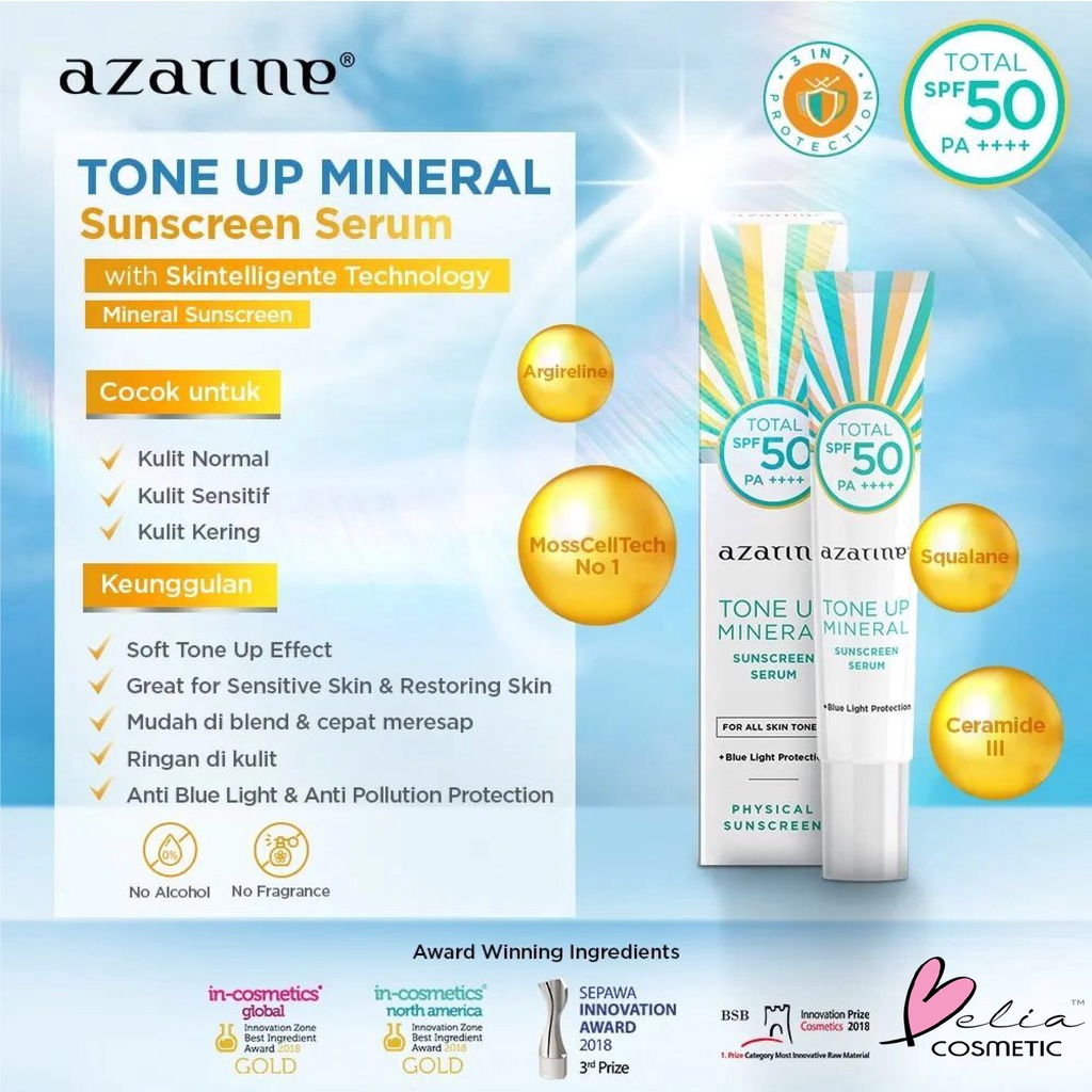 ❤ BELIA ❤ AZARINE Aqua Essence Sun Shield Serum SPF 50 PA+++ & Hydrasoothe Sunscreen Gel SPF45+++