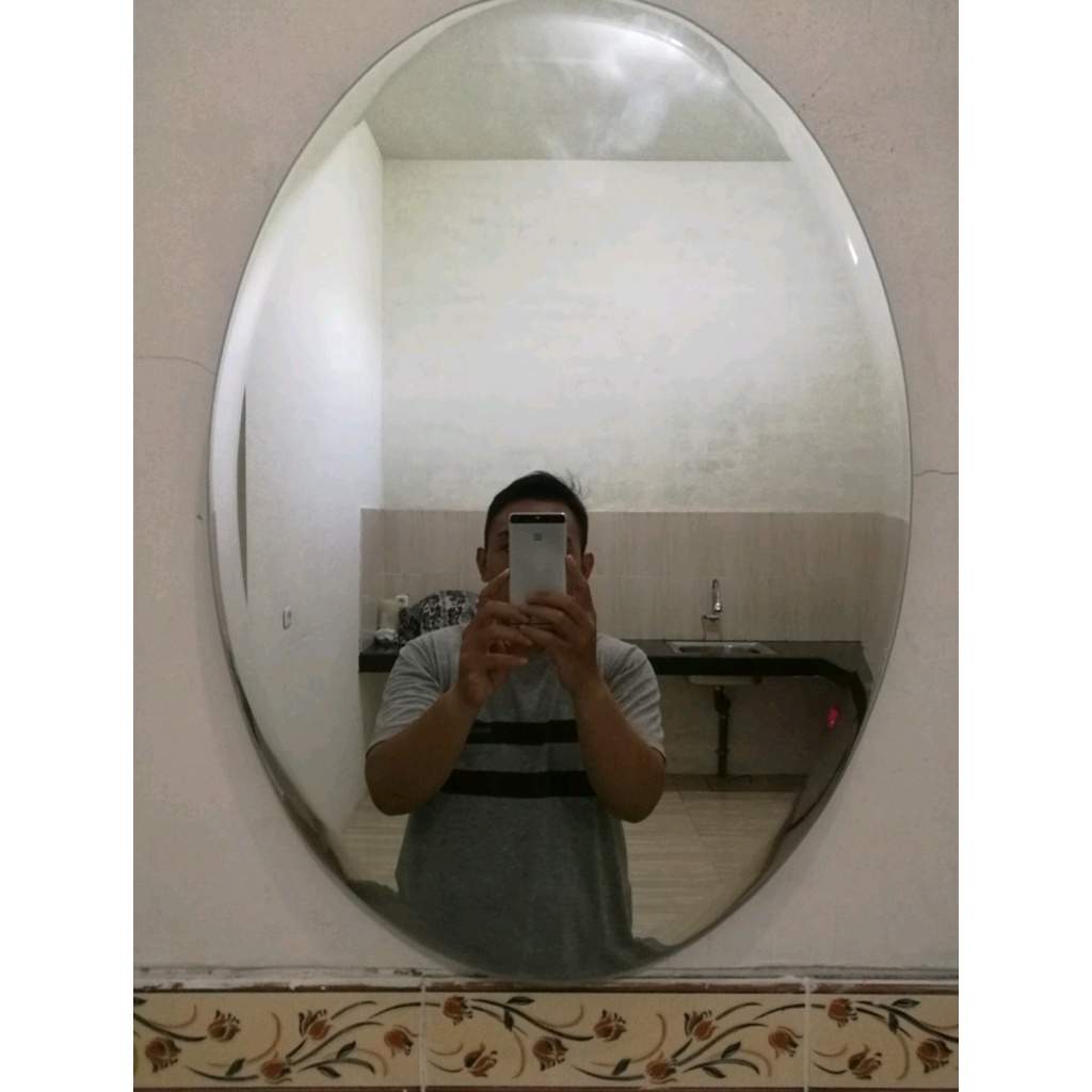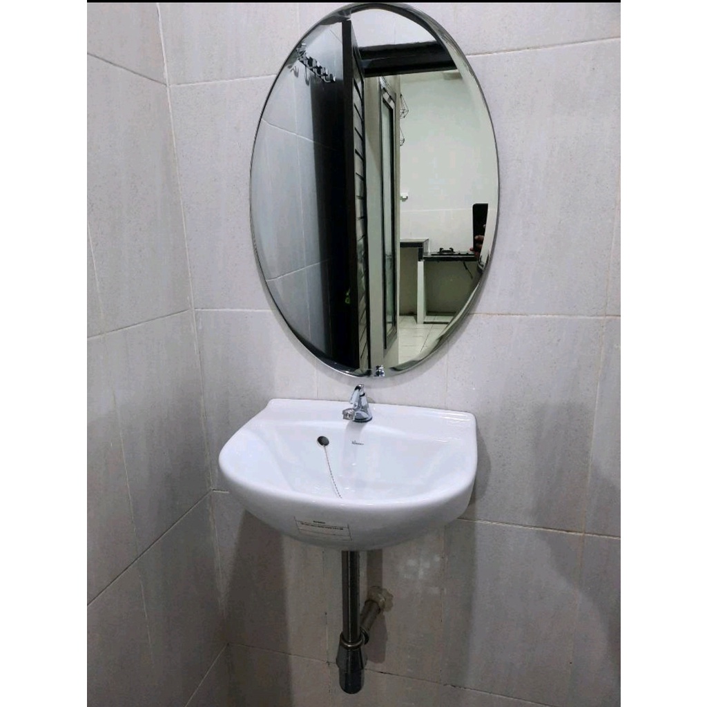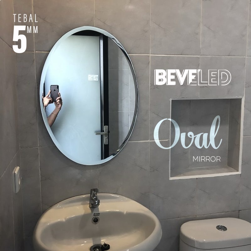 Cermin Wastafel OVAL- Kaca Kamar Mandi OVAL Motif Polos 45 x 60