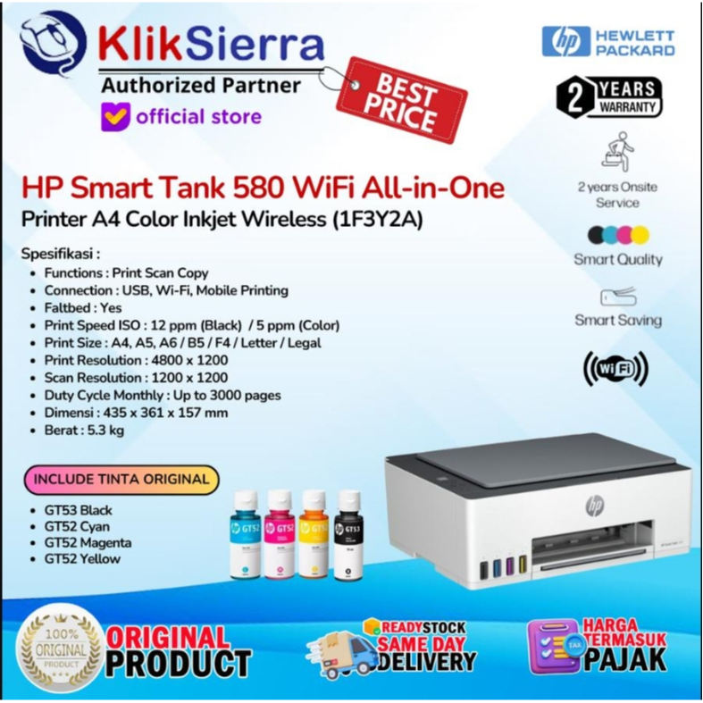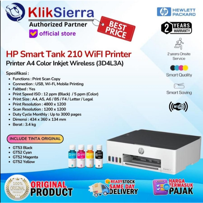 Printer HP Smart Tank HP-210 (3D4L3A), HP-520 (1F3W2A), HP-580 (1F3Y2A) SmartTank All-in-One WiFi