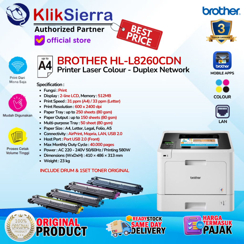 BROTHER HL-L8260CDN Printer Laser Colour Duplex + Network Color L8260 Garansi Resmi 3 Tahun