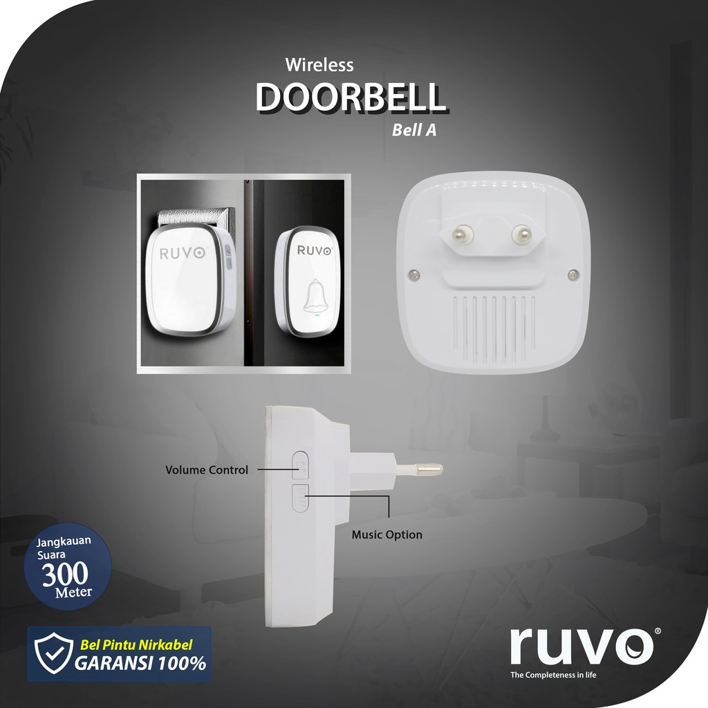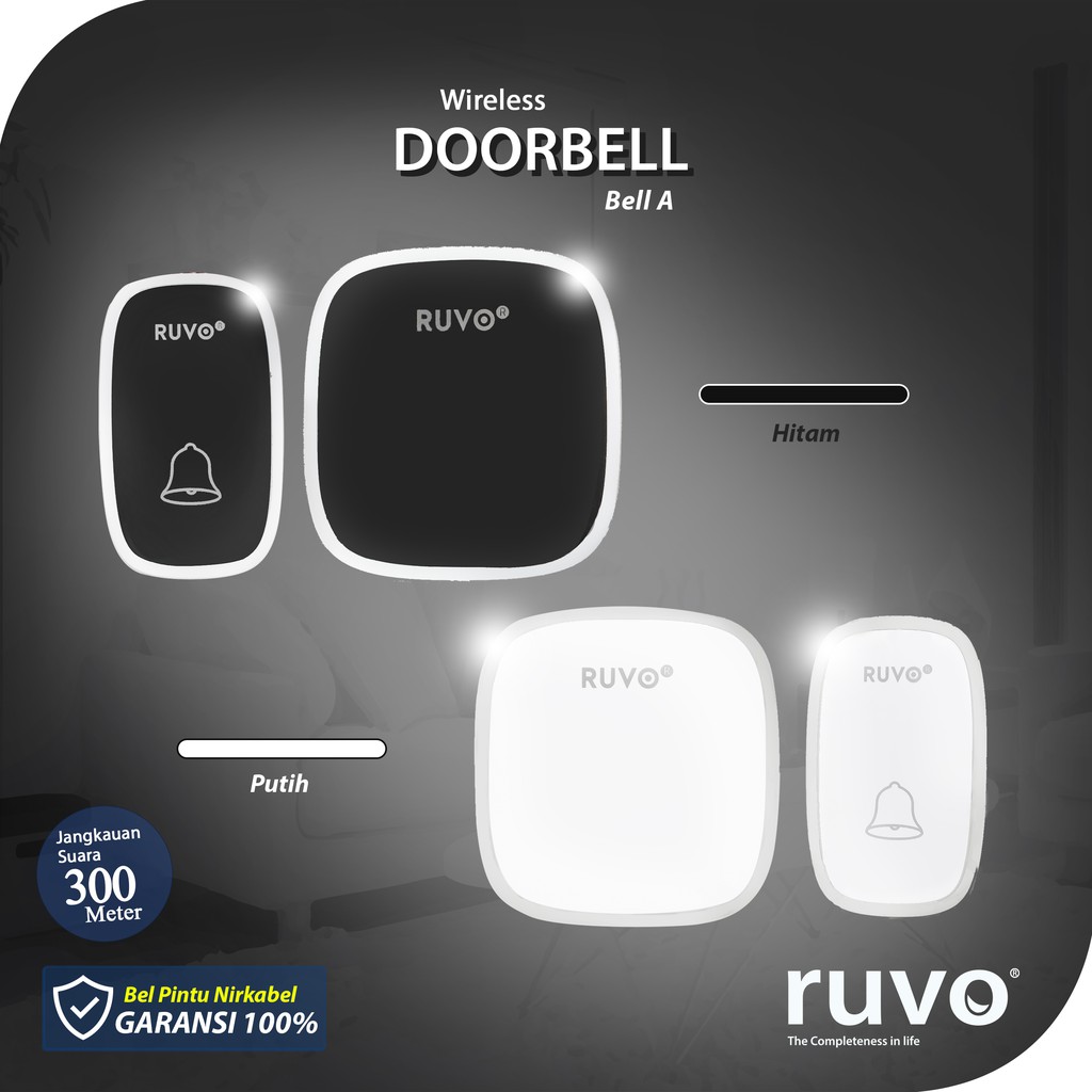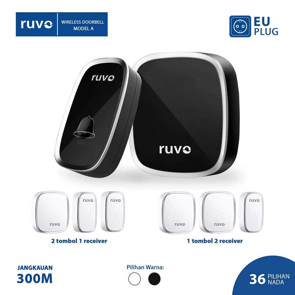[SENSOR LEBIH KUAT] RUVO Tipe A Bel Alarm Rumah Kantor Wireless Door Bell 2 Tombol 1 Receaver / 1 Transmitter 2 Receiver Waterproof Free Baterai Bel Pintu Pagar