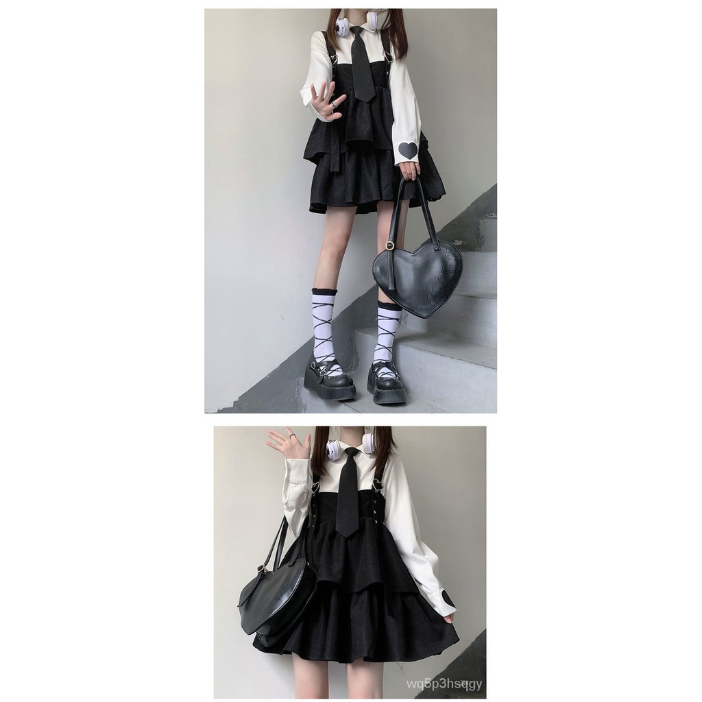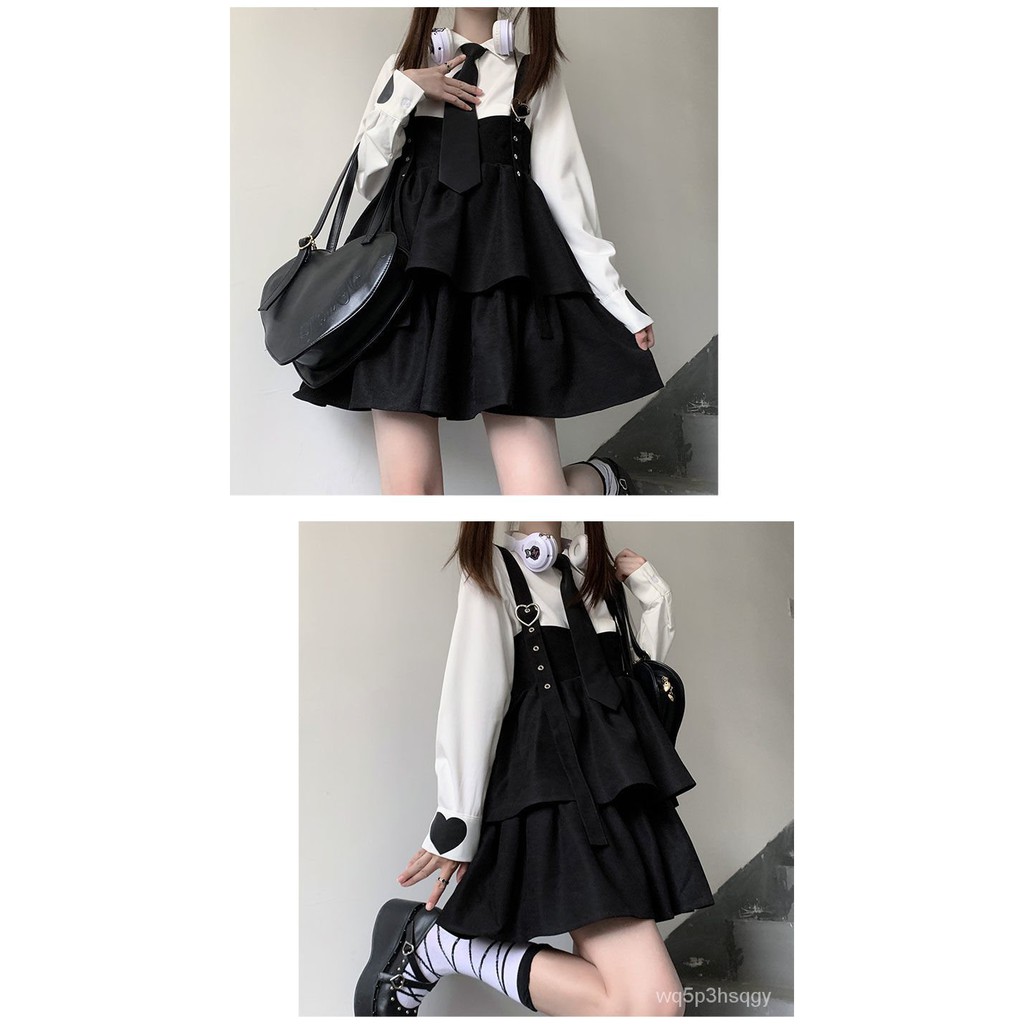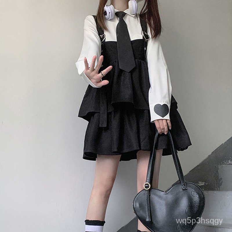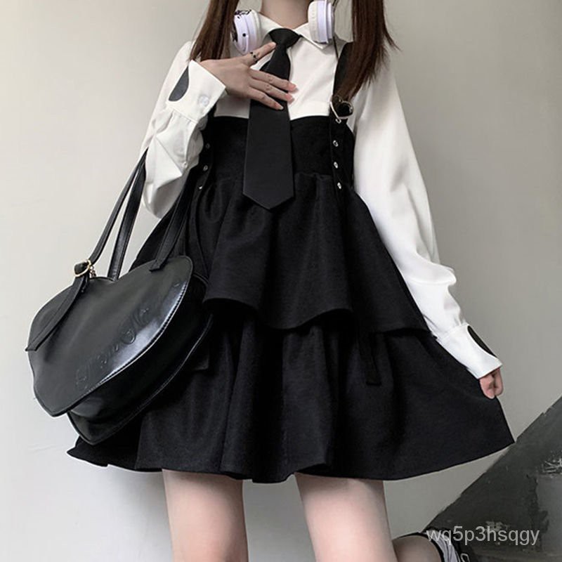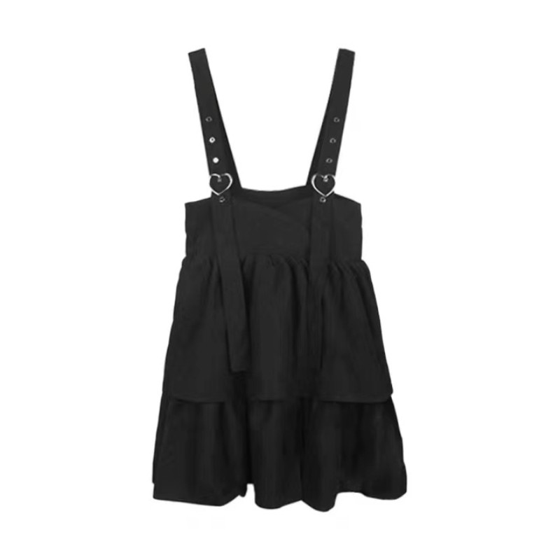 HOUZHOU Kawaii Black Ruffle Layer Lolita Dress Women Autumn Japanese Soft Girl Sleeveless Strap Cute