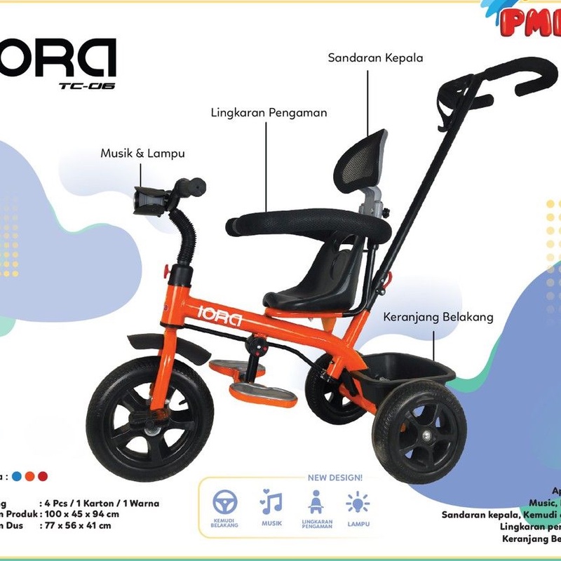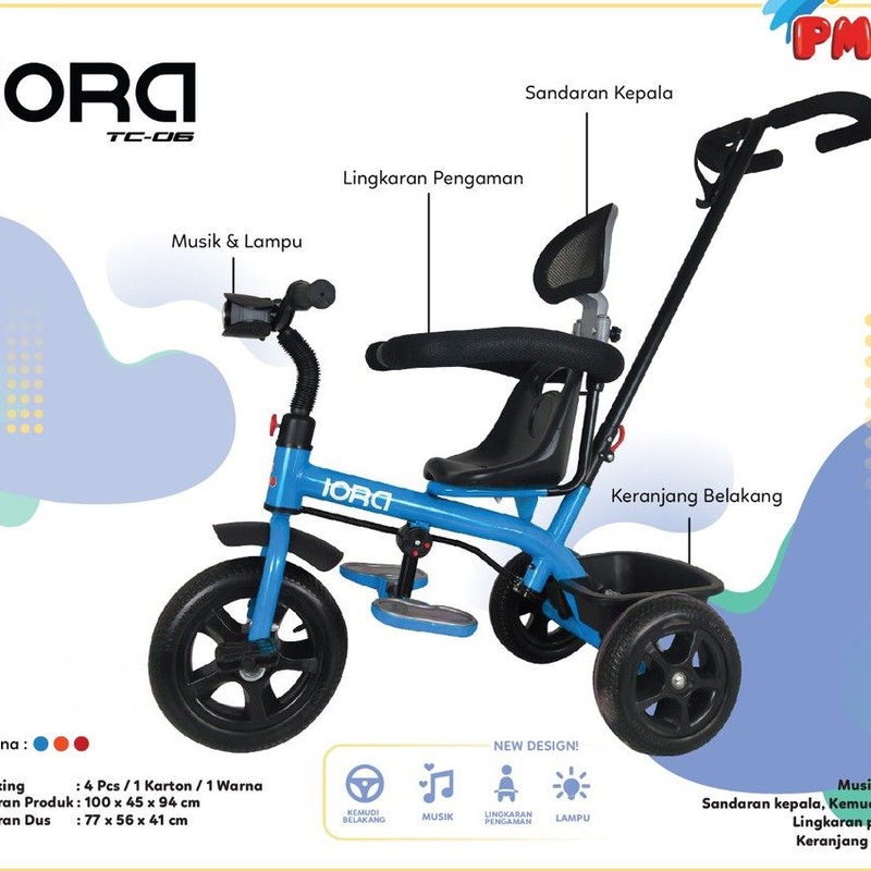 Sepeda Roda Tiga Anak PMB IORA TC06 Musik Lampu Lingkaran Pengaman Sandaran Kepala