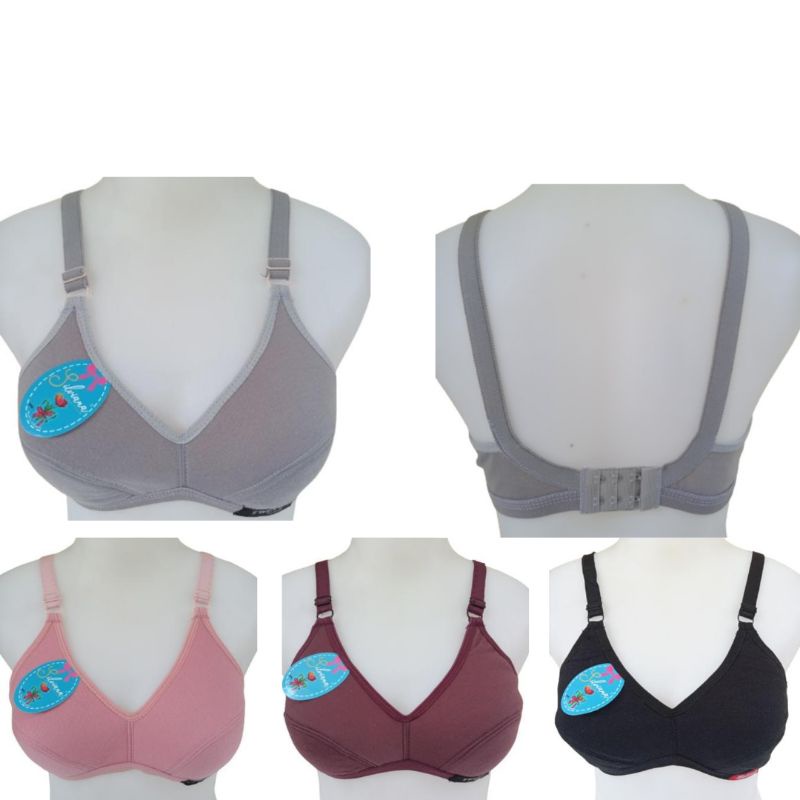 Bra Jumbo Bh Sport Wanita Size 40 BB 70kg - 80kg Cup Sedang Tanpa Busa Tanpa Kawat Bahan Katun Kait 2 Warna Pink Abu Hitam Coklat Untuk Dewasa dan Remaja Jumbo